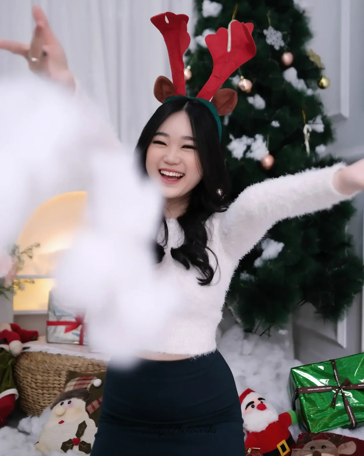 A whimsical Santa's helper spreads Christmas cheer amidst a snowy festivity.