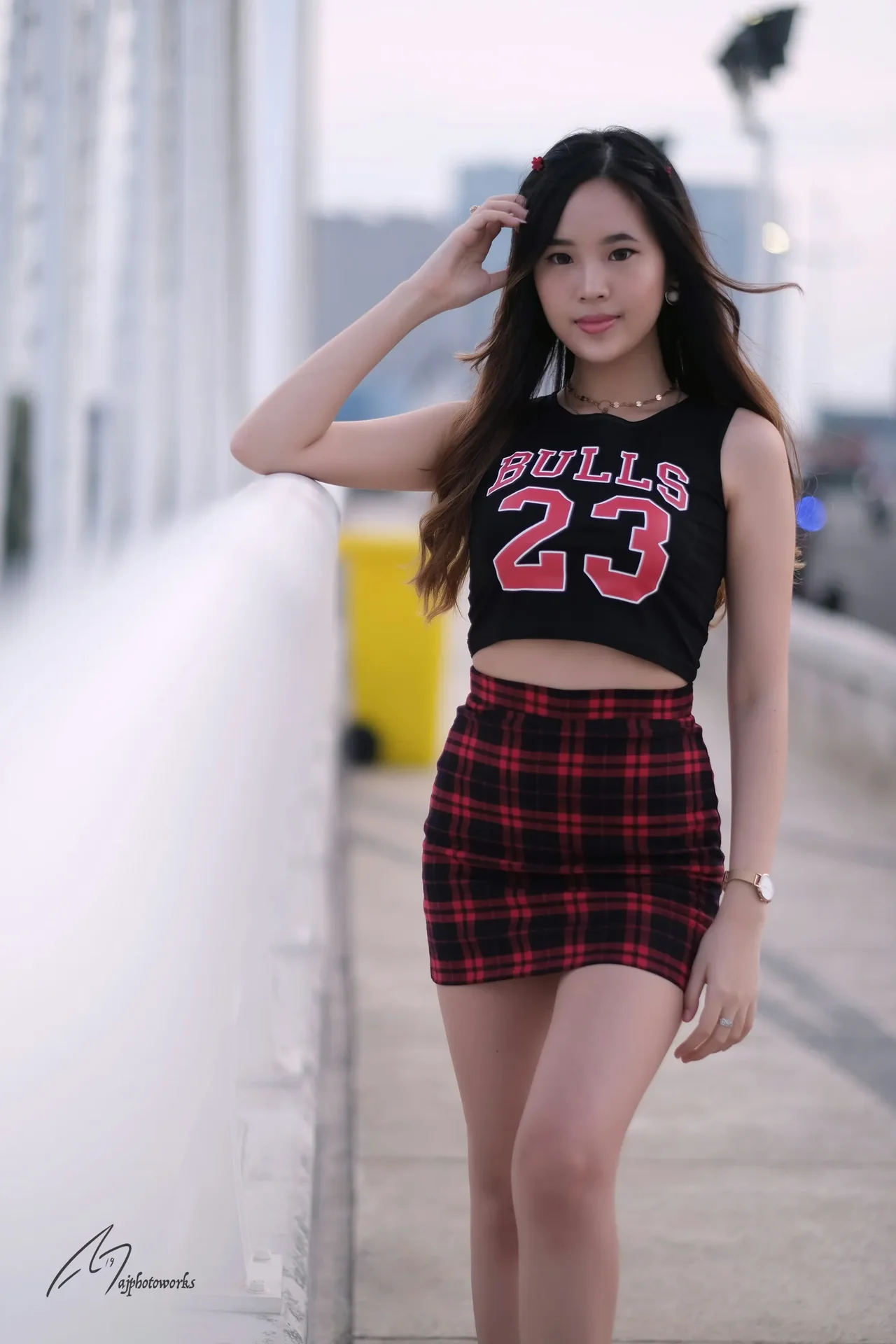 Sporty meets streetwise in this vibrant urban portrait blending athletic flair with edgy street style.