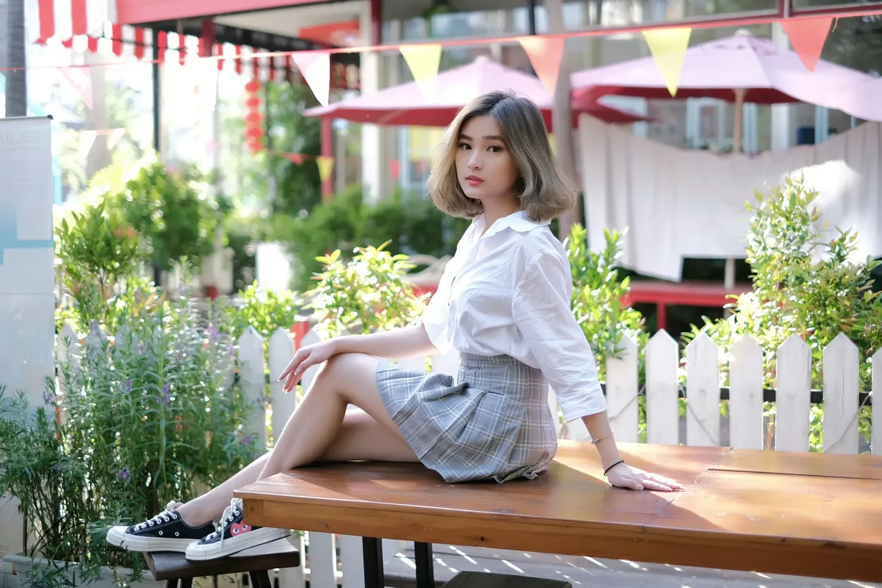 Sun-kissed and carefree. A moment of quiet beauty in a vibrant setting.