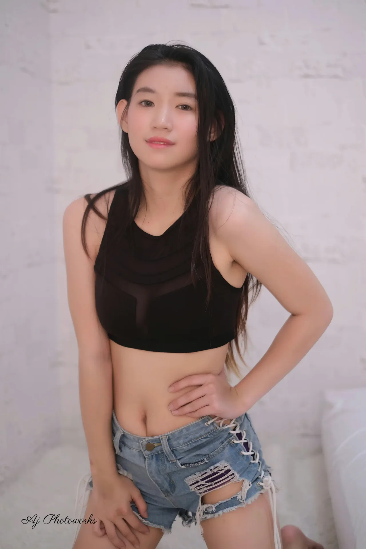 The interplay of fabric and form: plaid layers over restless denim, set against the quiet backdrop of a studio's dreamscape.