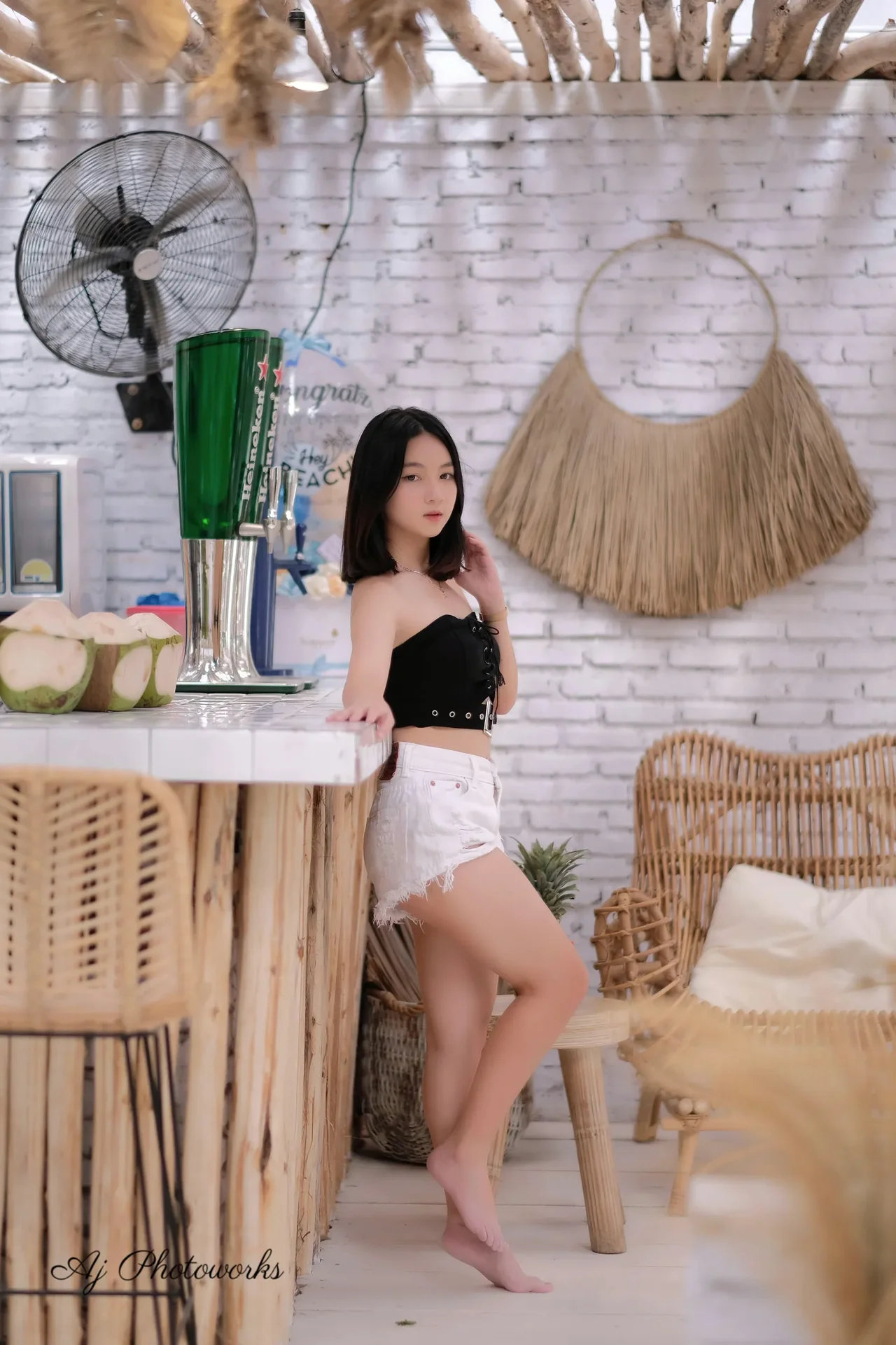 A moment of casual elegance captured in a unique setting. The textures and light create a relaxed and inviting atmosphere.