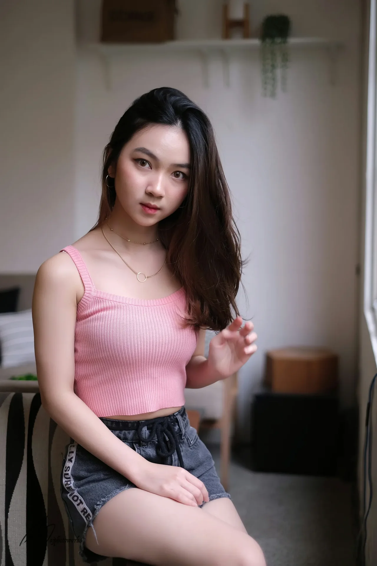 A candid moment captured in a cozy setting, radiating youthful energy and a playful spirit.