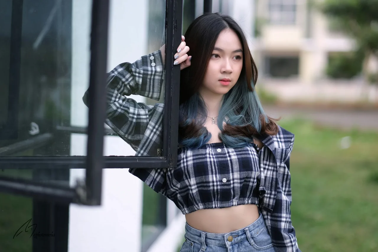 A blend of retro and modern aesthetics captured in a candid urban portrait.