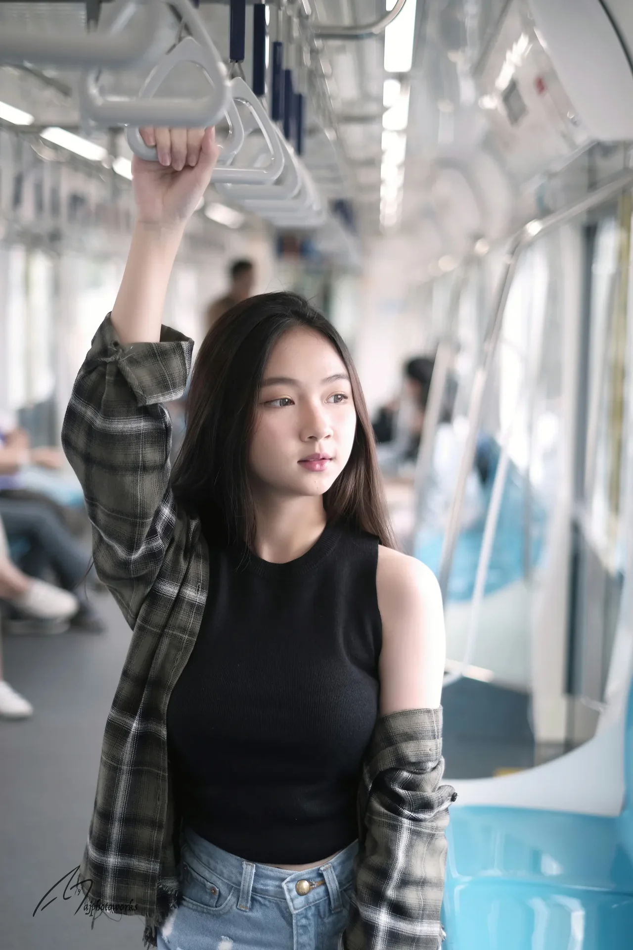 Urban Transit - A young woman navigates the rhythm of the city in a modern subway setting, blending edgy fashion with everyday elegance.