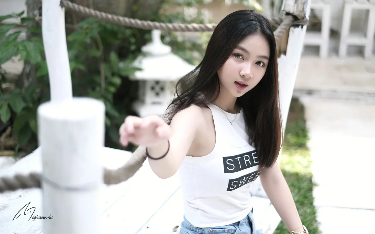 Effortless summer charm meets nature's serenity in a candid outdoor portrait.
