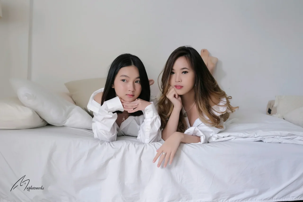 Intimate moments and soft light create a serene atmosphere in this portrait of two women.