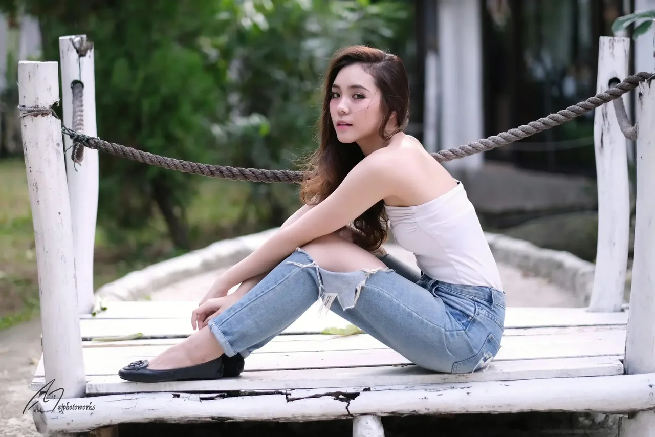 A contemplative pose on a weathered bridge, blending urban decay with natural serenity.