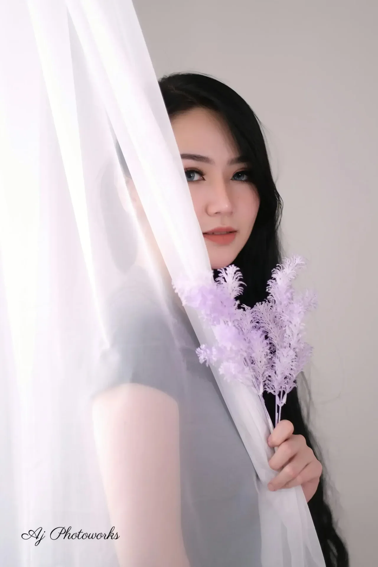 Serene boudoir meets casual fashion, where soft textures, playful denim, and delicate florals converge under studio lighting.