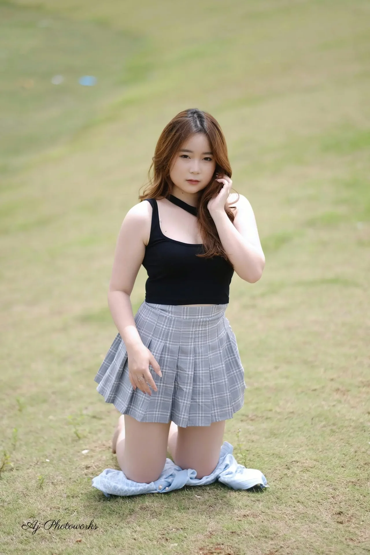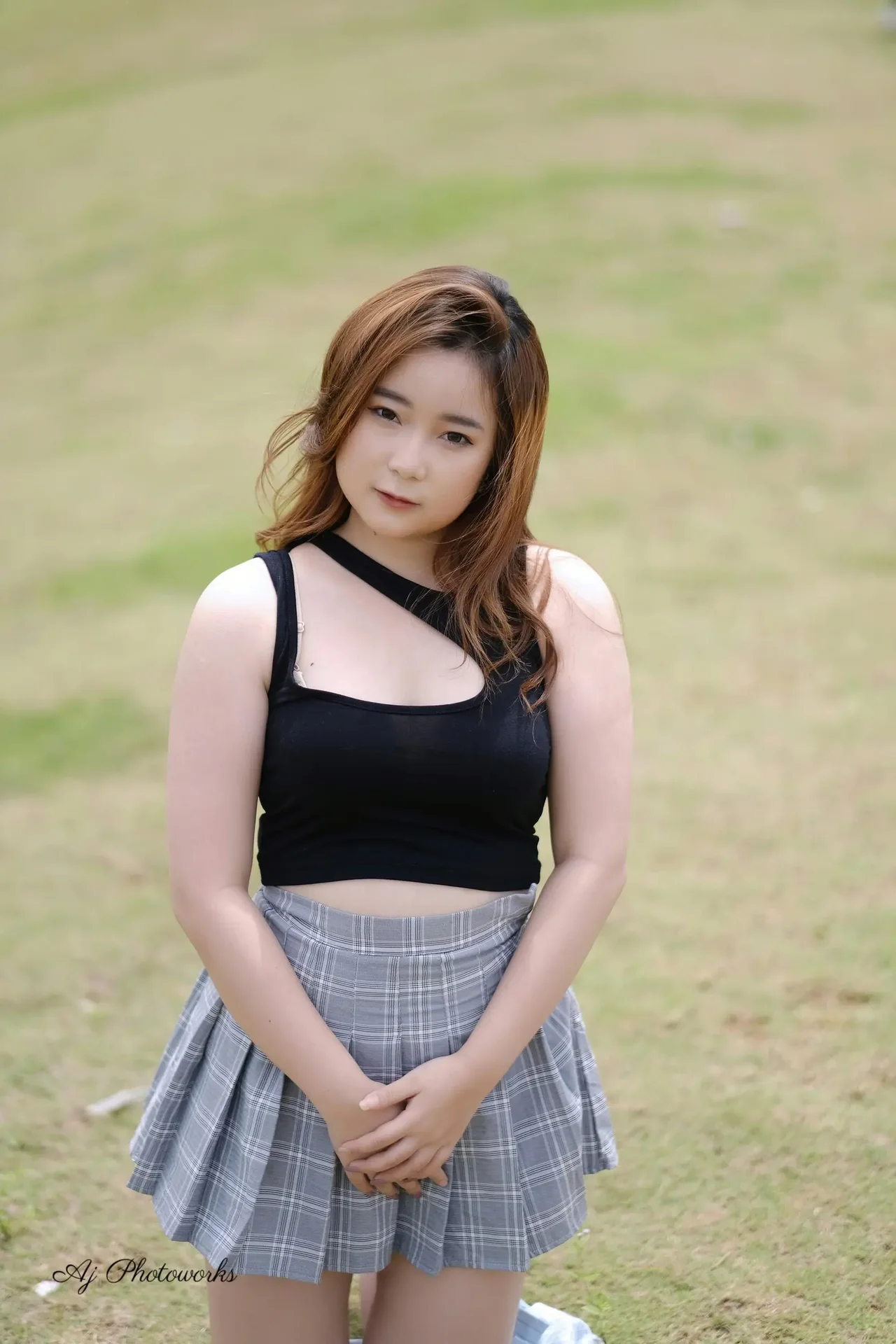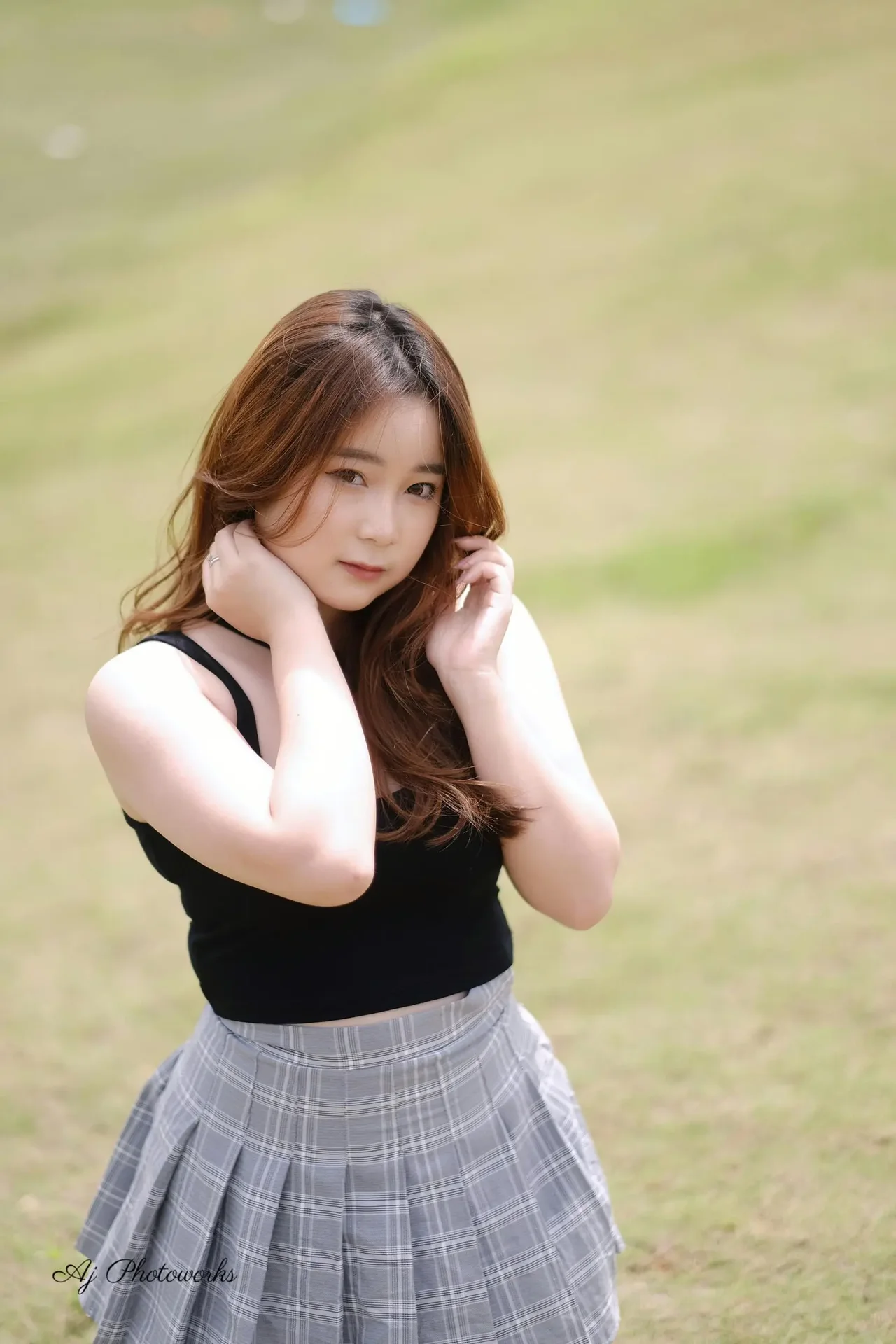 Effortless style and soft serenity captured in a natural outdoor atmosphere, highlighting casual fashion and subtle elegance.