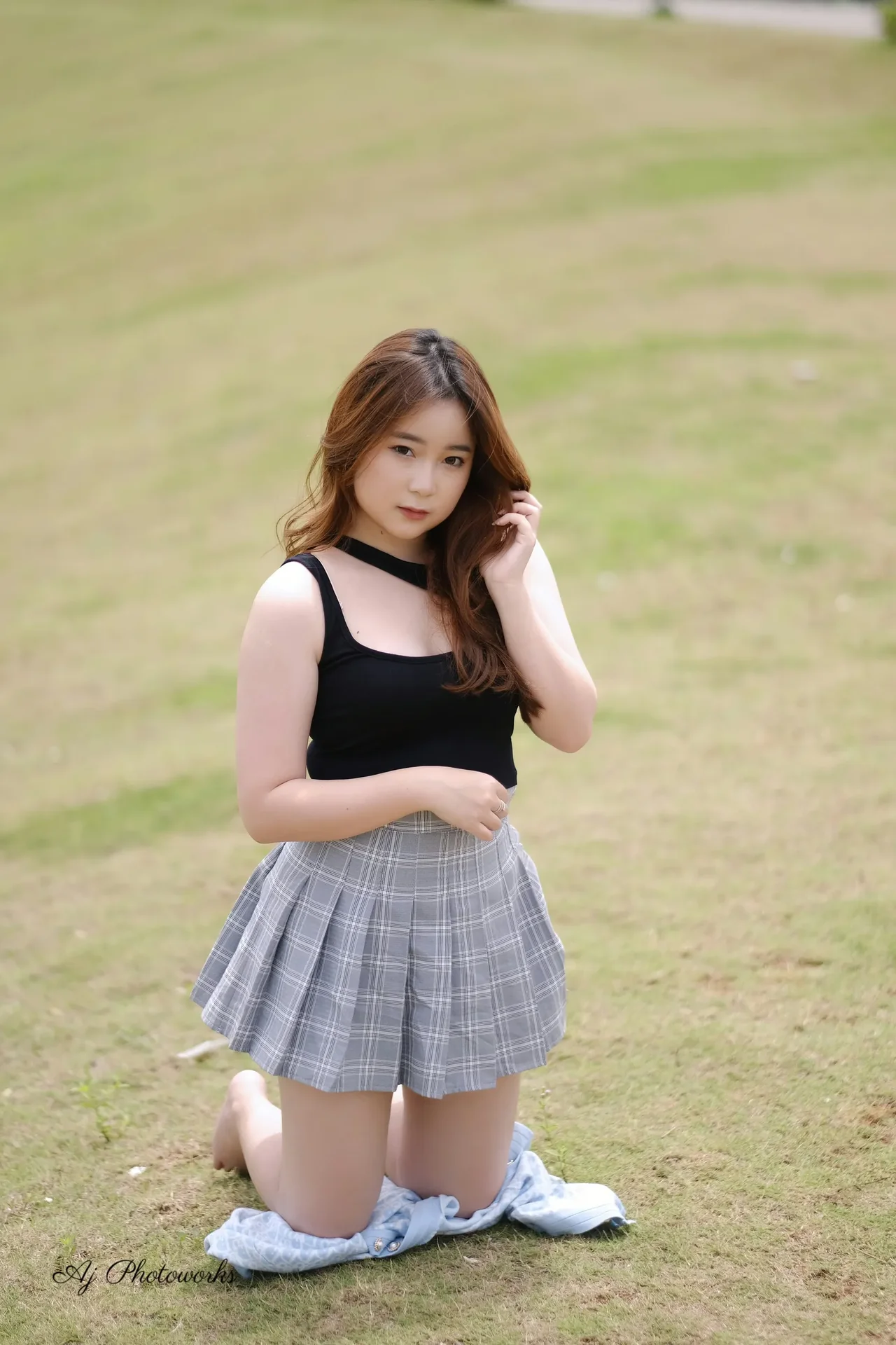 A young woman in a fashion photoshoot poses dynamically across urban and outdoor settings, blending casual and structured aesthetics under natural daylight.