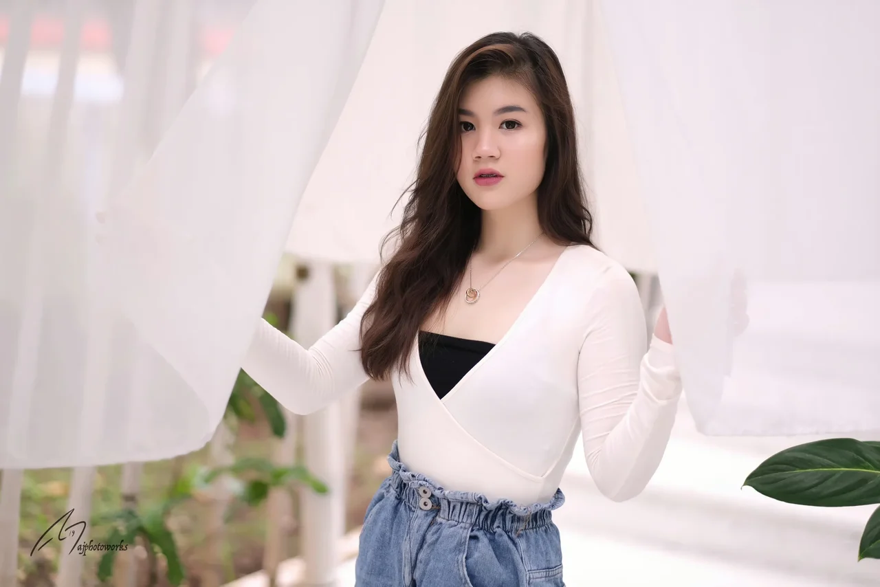 Soft light and a gentle gaze create a moment of quiet beauty. Embracing simplicity and natural elegance.