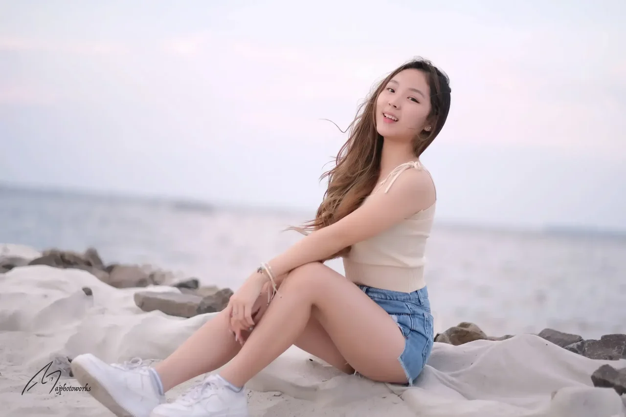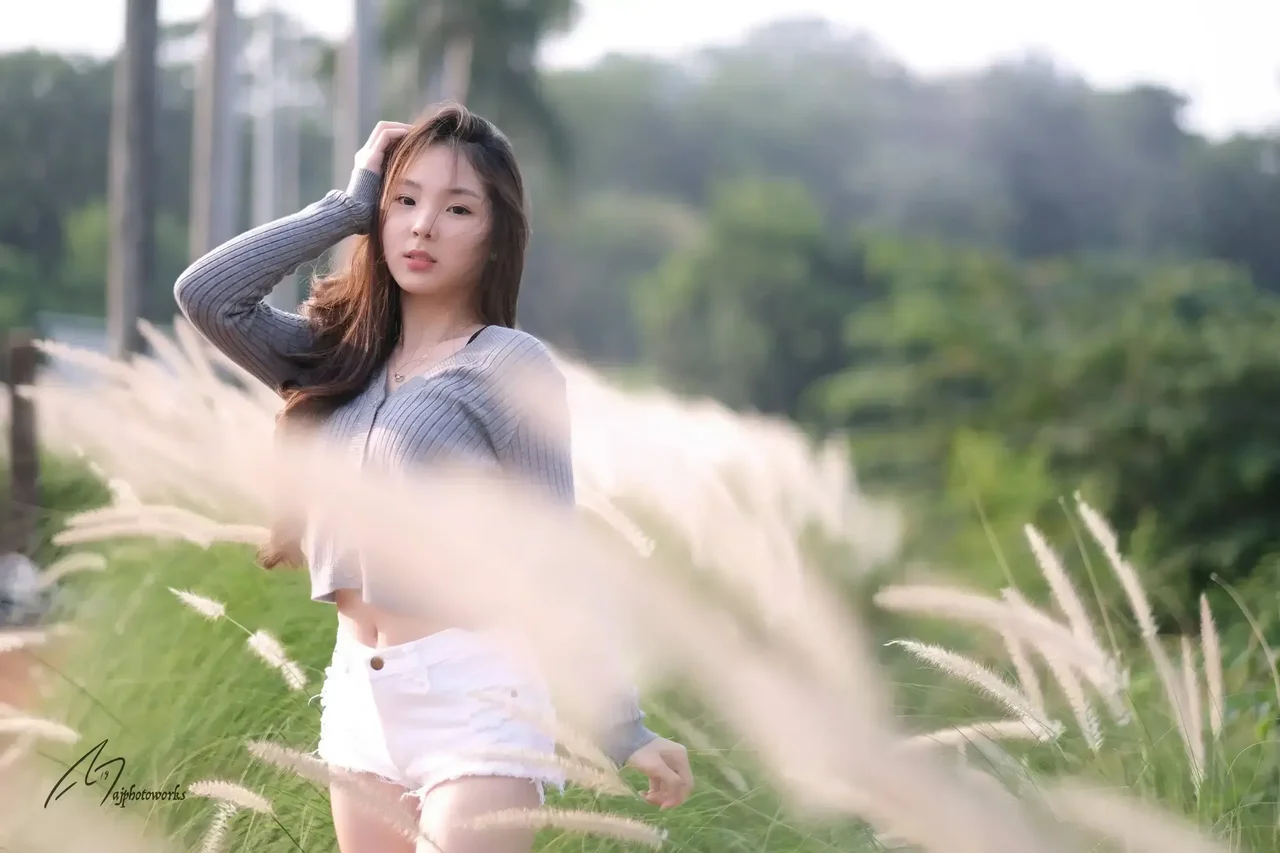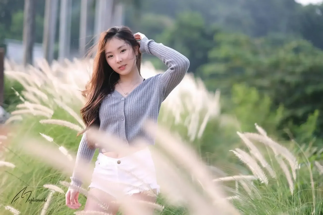 Ethereal beach waves meet pastoral grasses in a portrait of modern femininity.