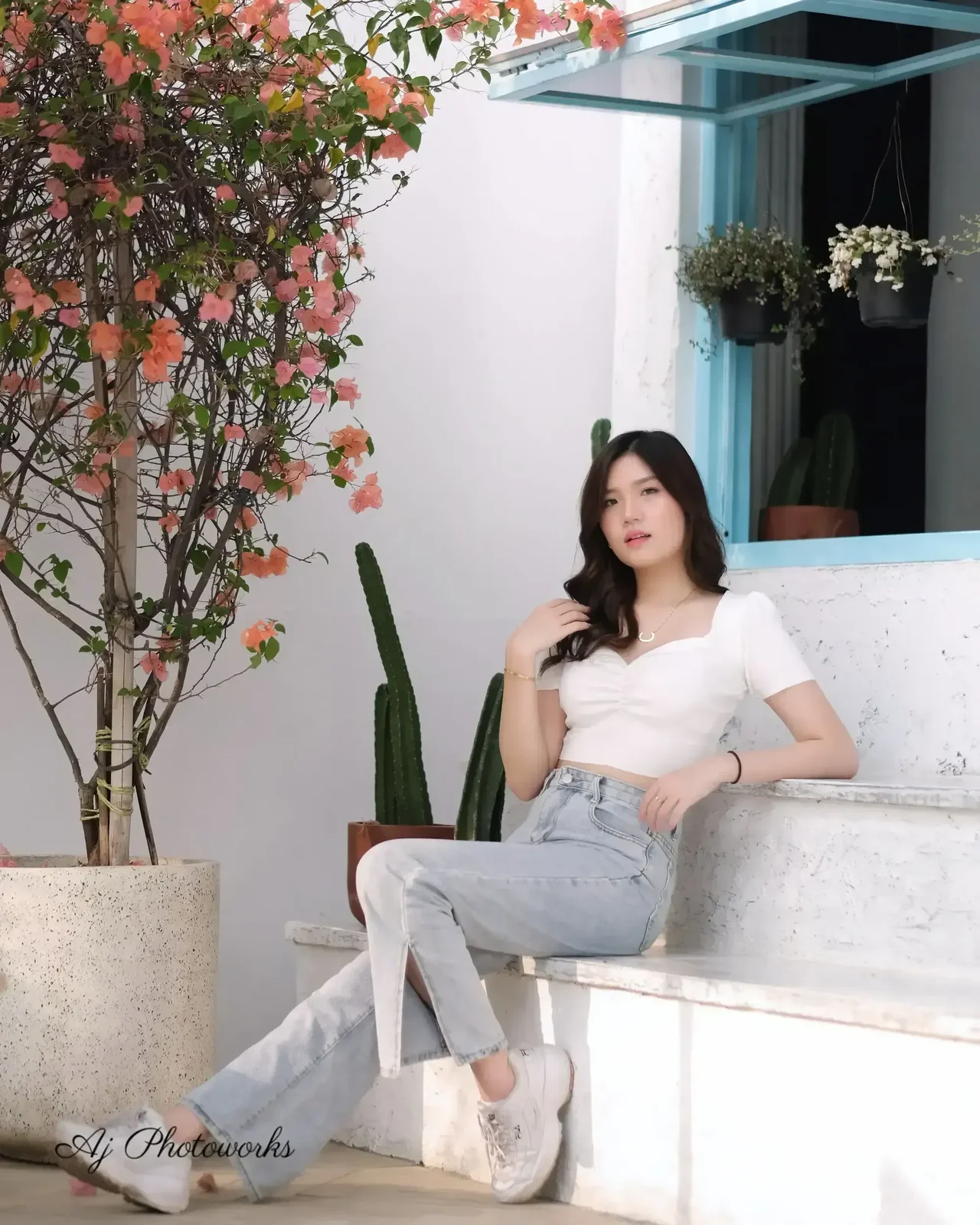 Effortless urban charm meets blooming floral accents with retro cafe seating in vibrant street-side settings.