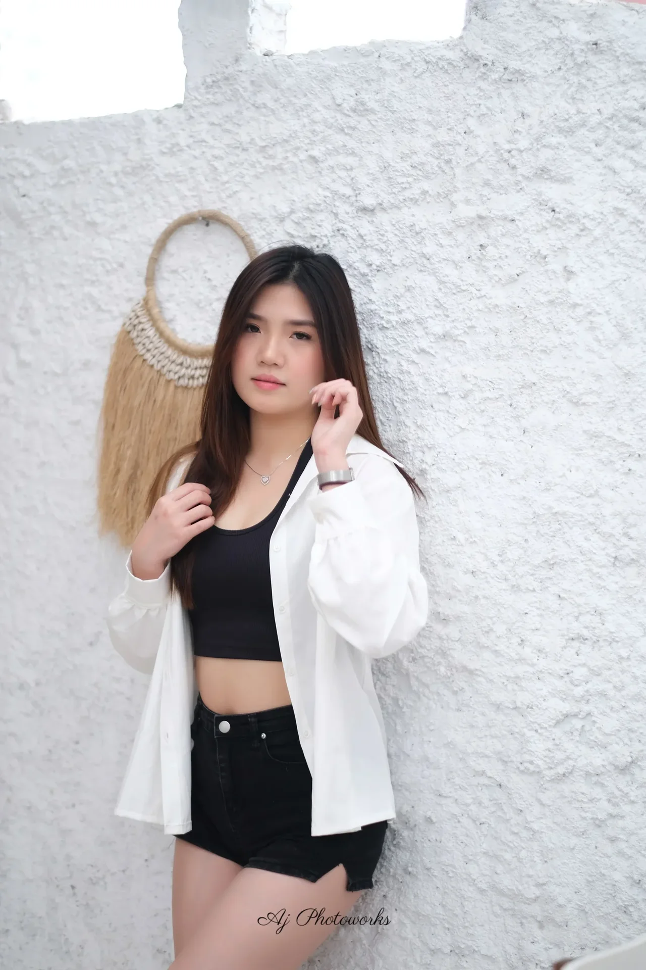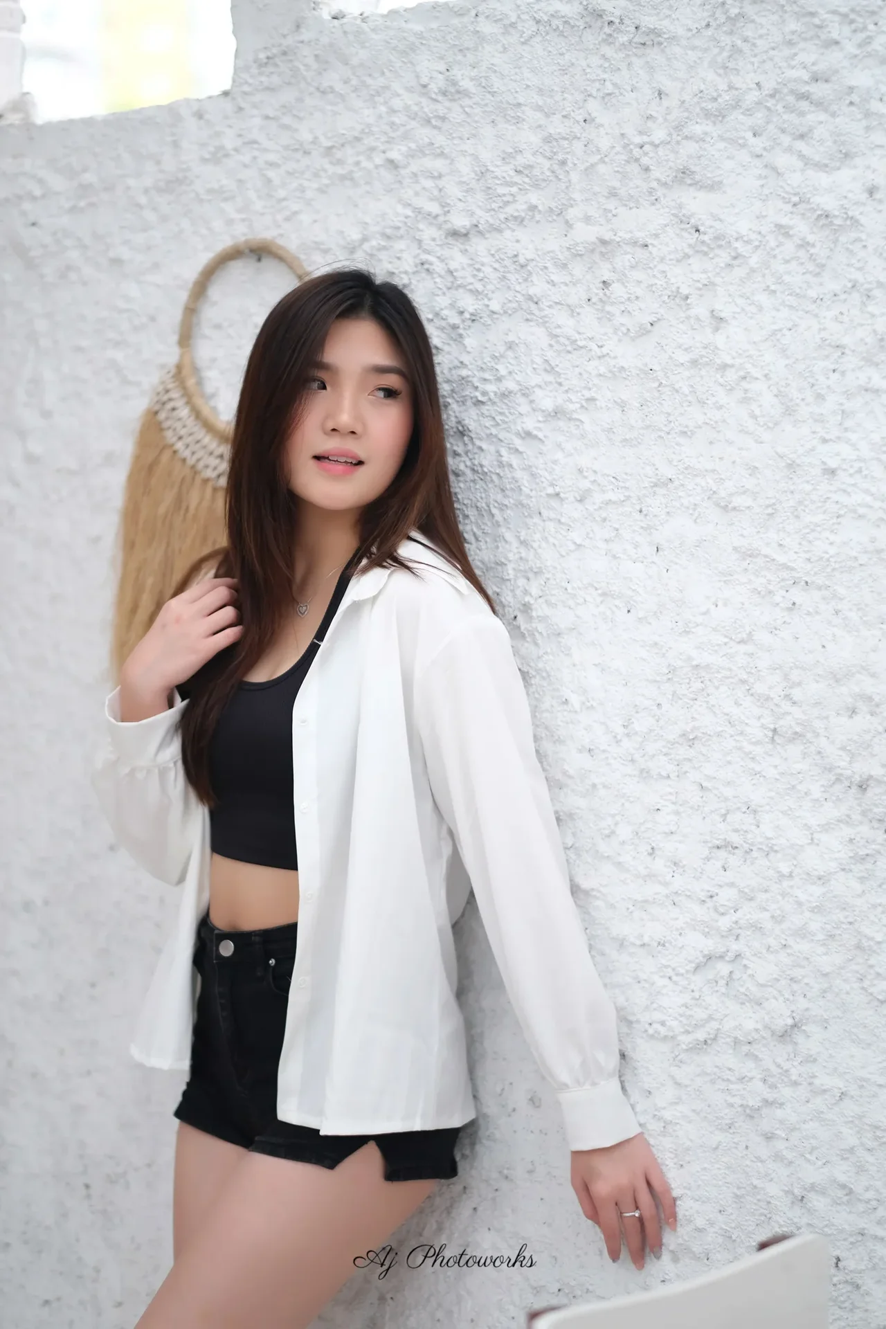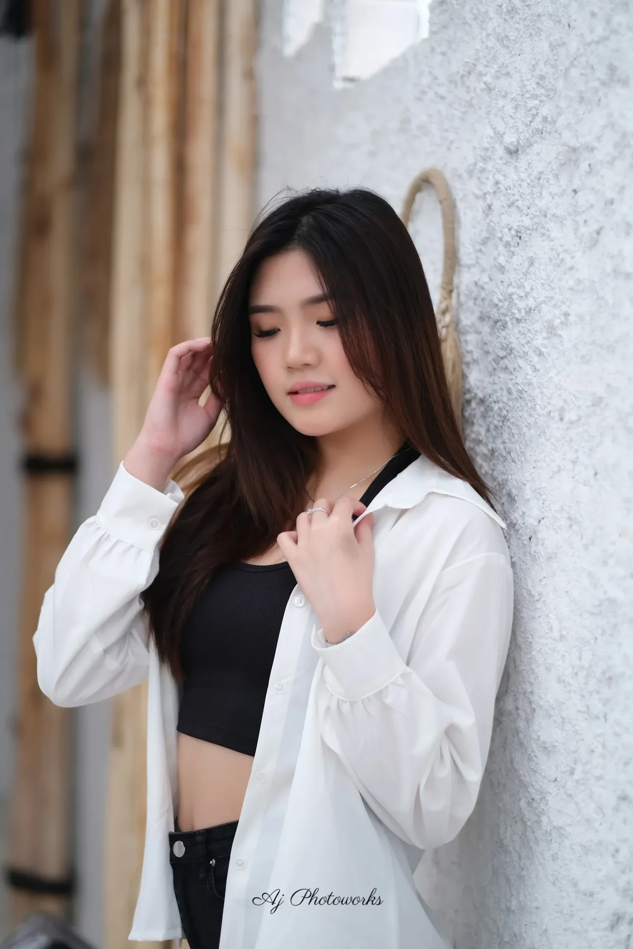 Modern streetwear fashion shoot capturing a confident portrait against a textured urban backdrop, highlighting bold contrasts and natural daylight aesthetics.