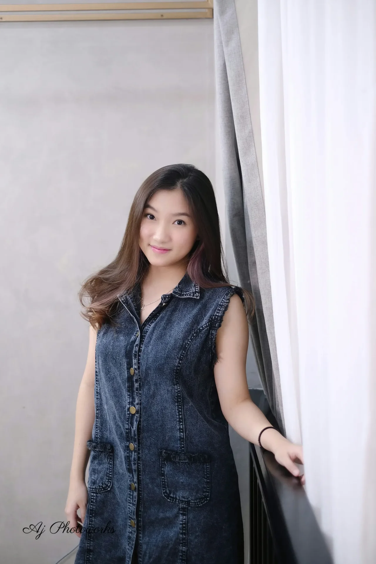 A moment of quiet confidence. Soft light and a simple denim dress create a timeless portrait.