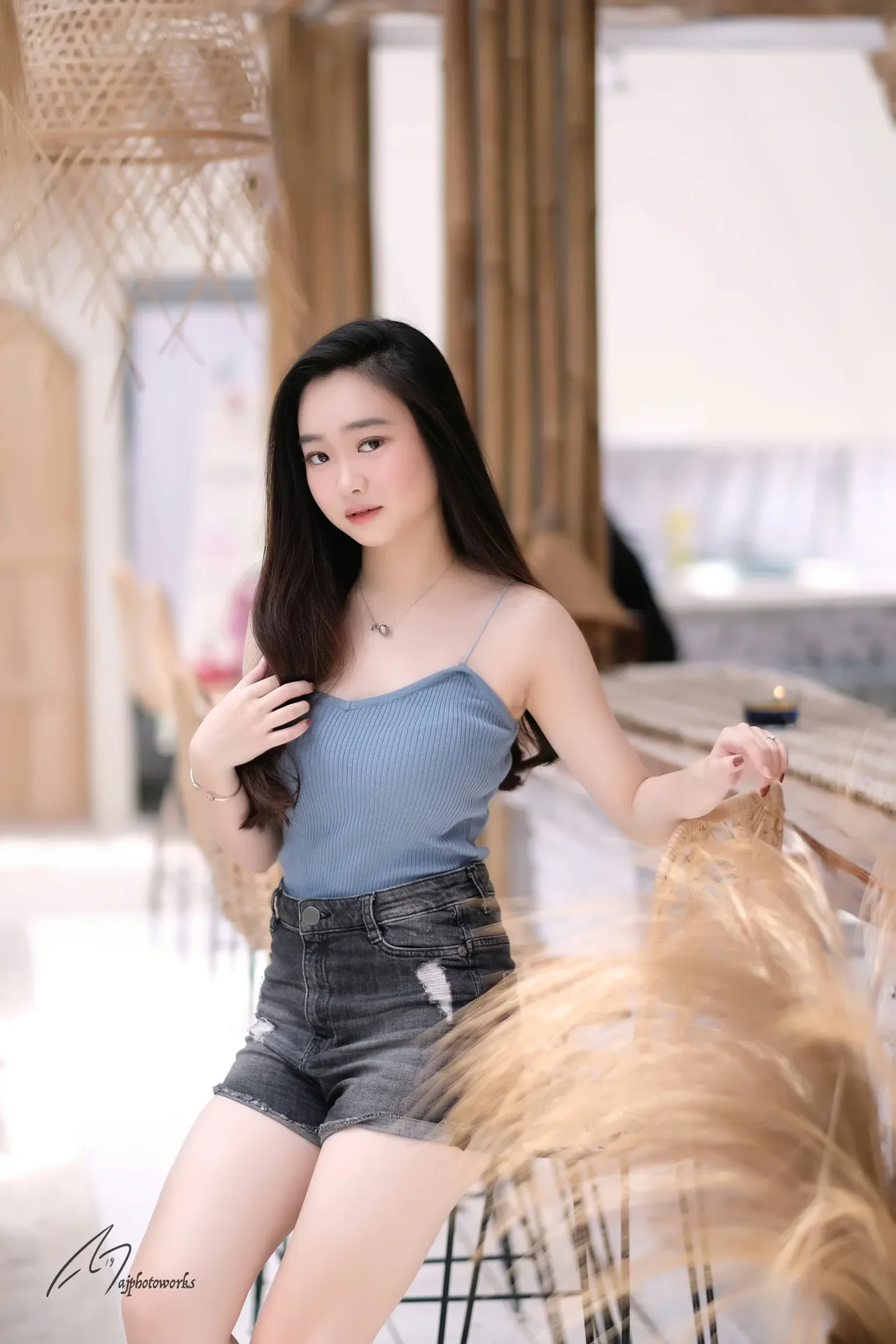 Modern elegance meets casual chic in a sunlit outdoor setting. Soft textures, warm lighting, and timeless fashion details create a serene, inviting atmosphere.
