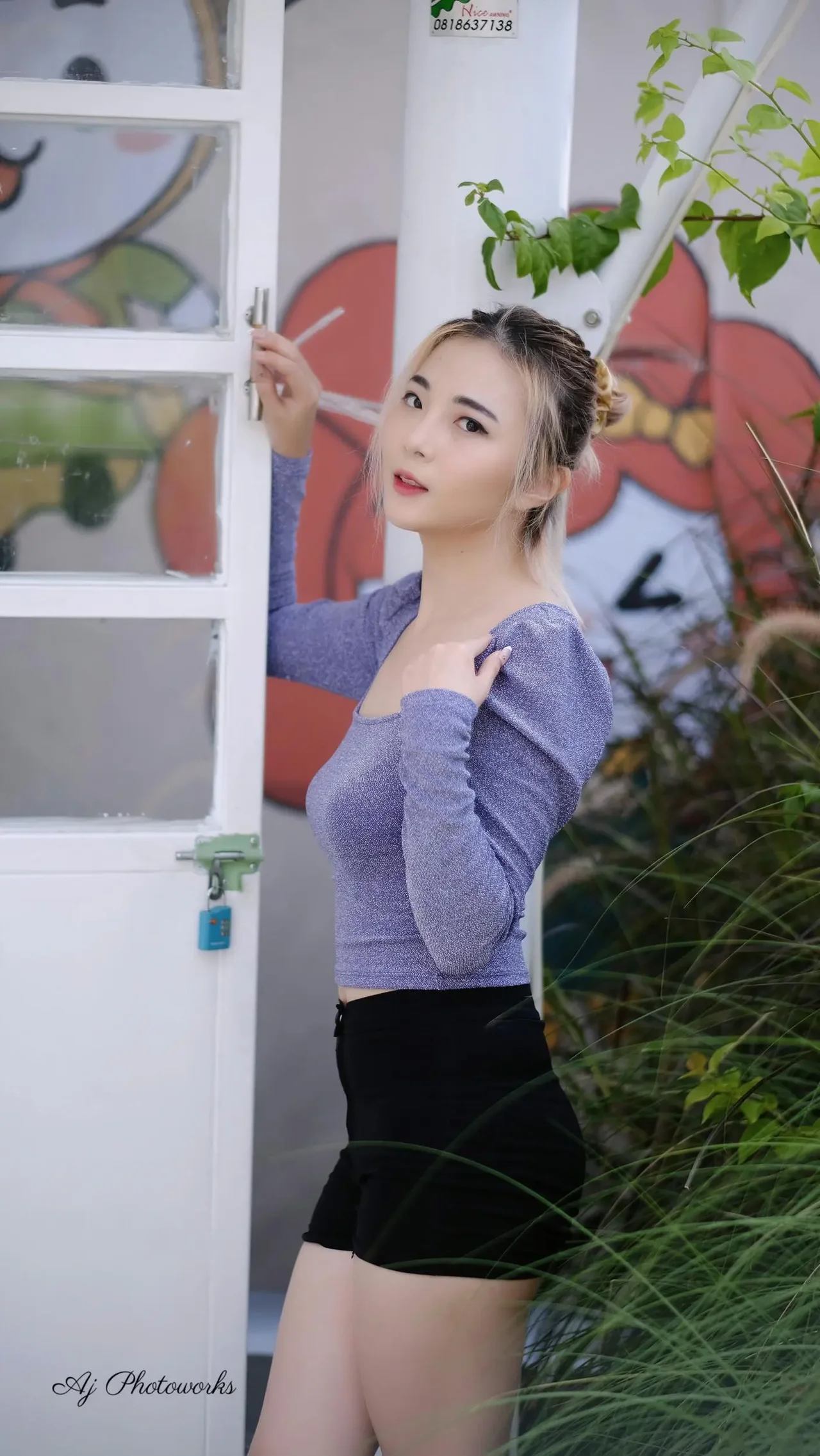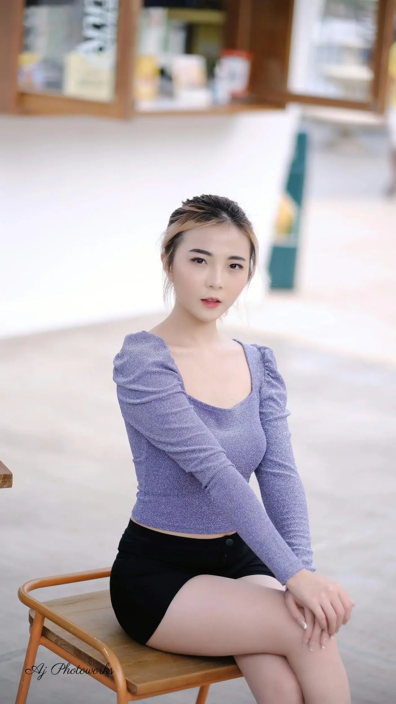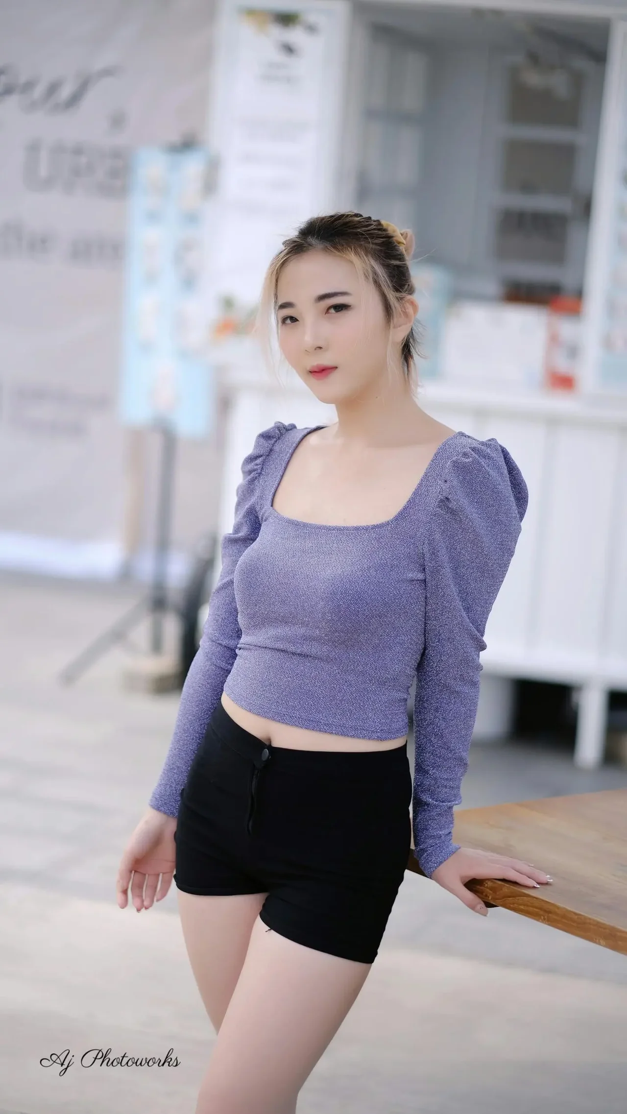 Casual urban fashion in light purples and black, blending playful confidence with modern street aesthetics.