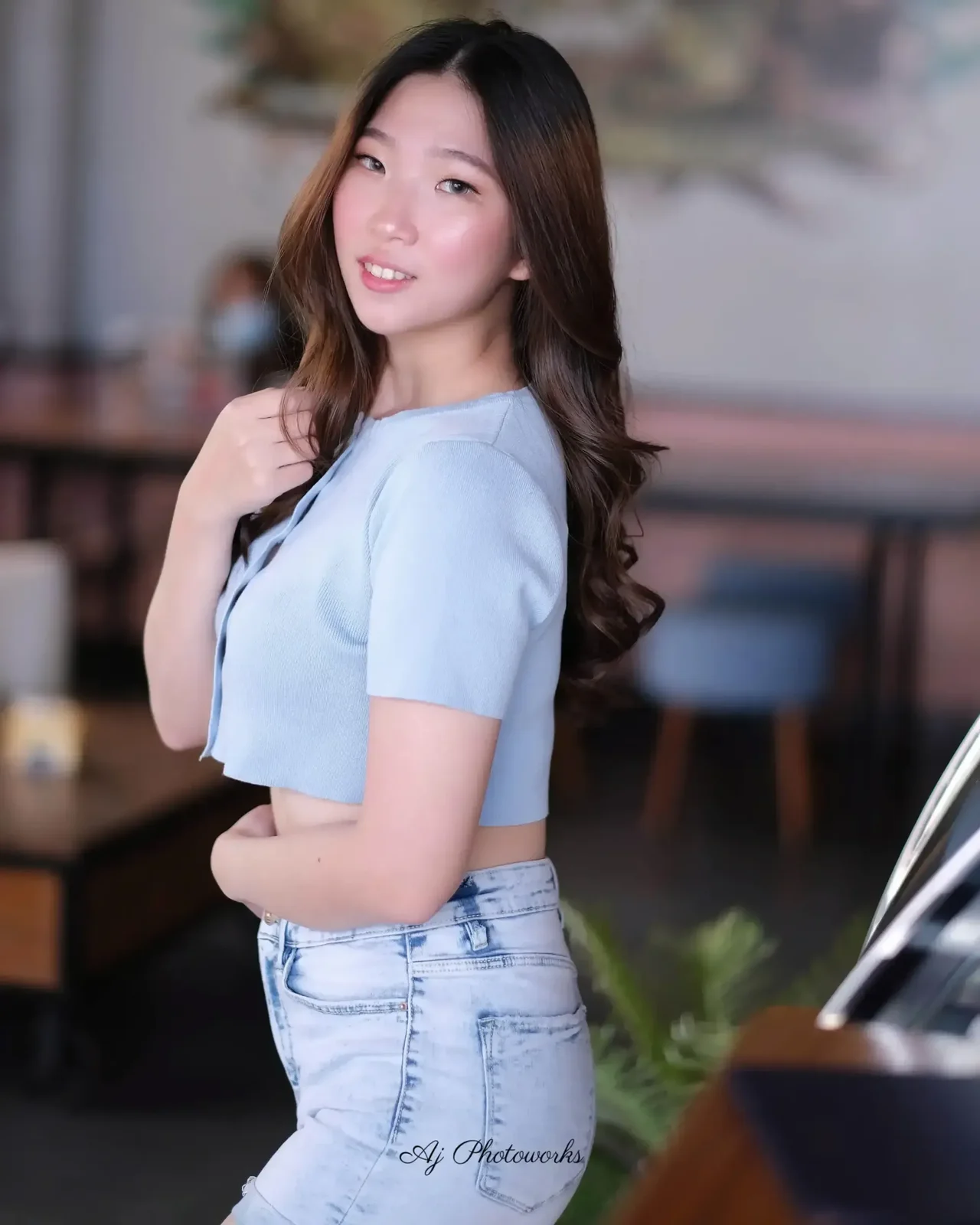 A serene portrait of a young woman in a modern café, blending casual elegance and natural lighting.