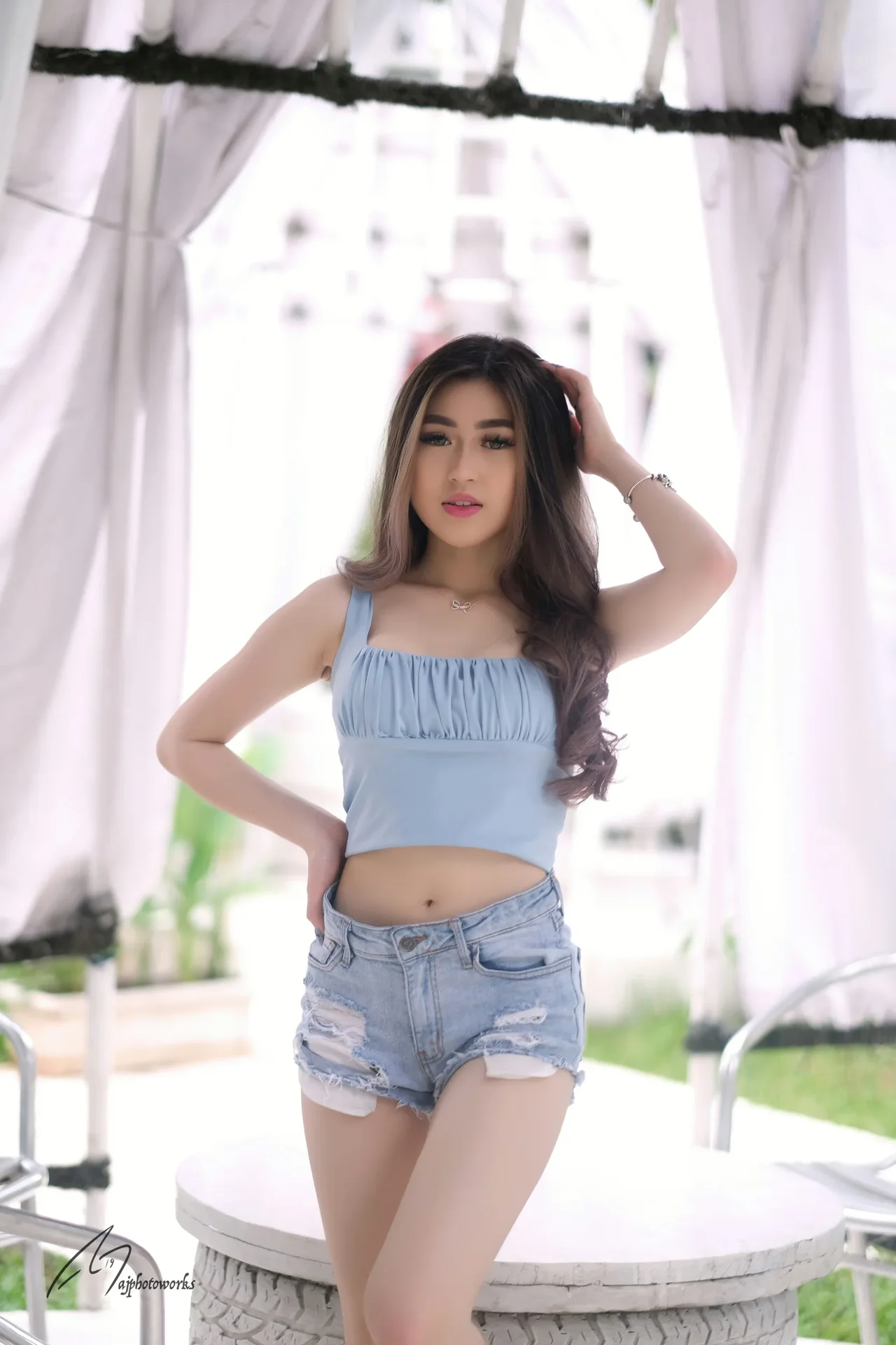 A series of candid fashion portraits capturing a youthful, summery vibe through casual outfits and relaxed poses in natural settings.
