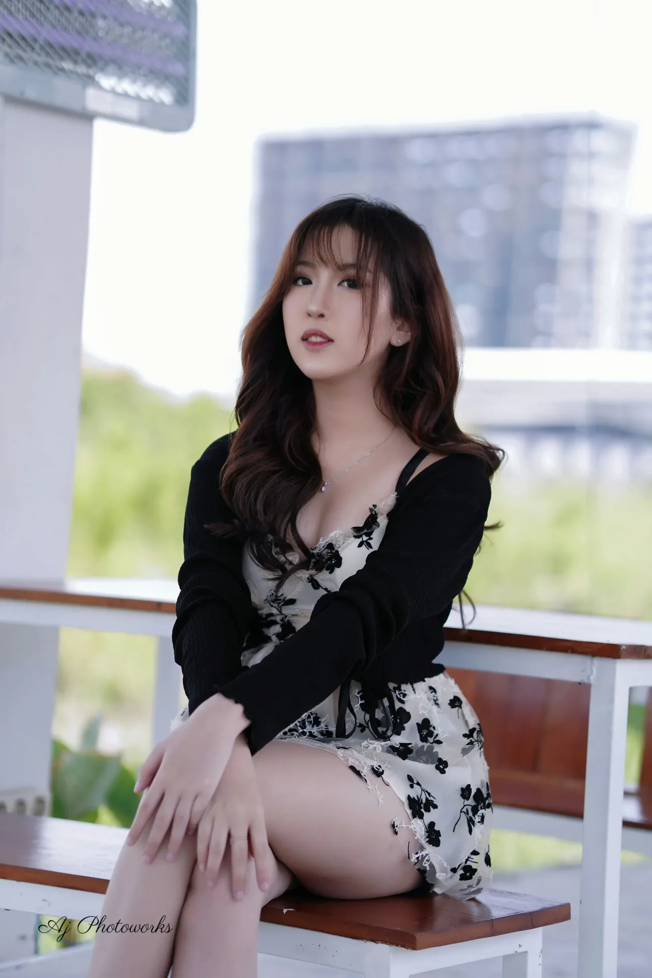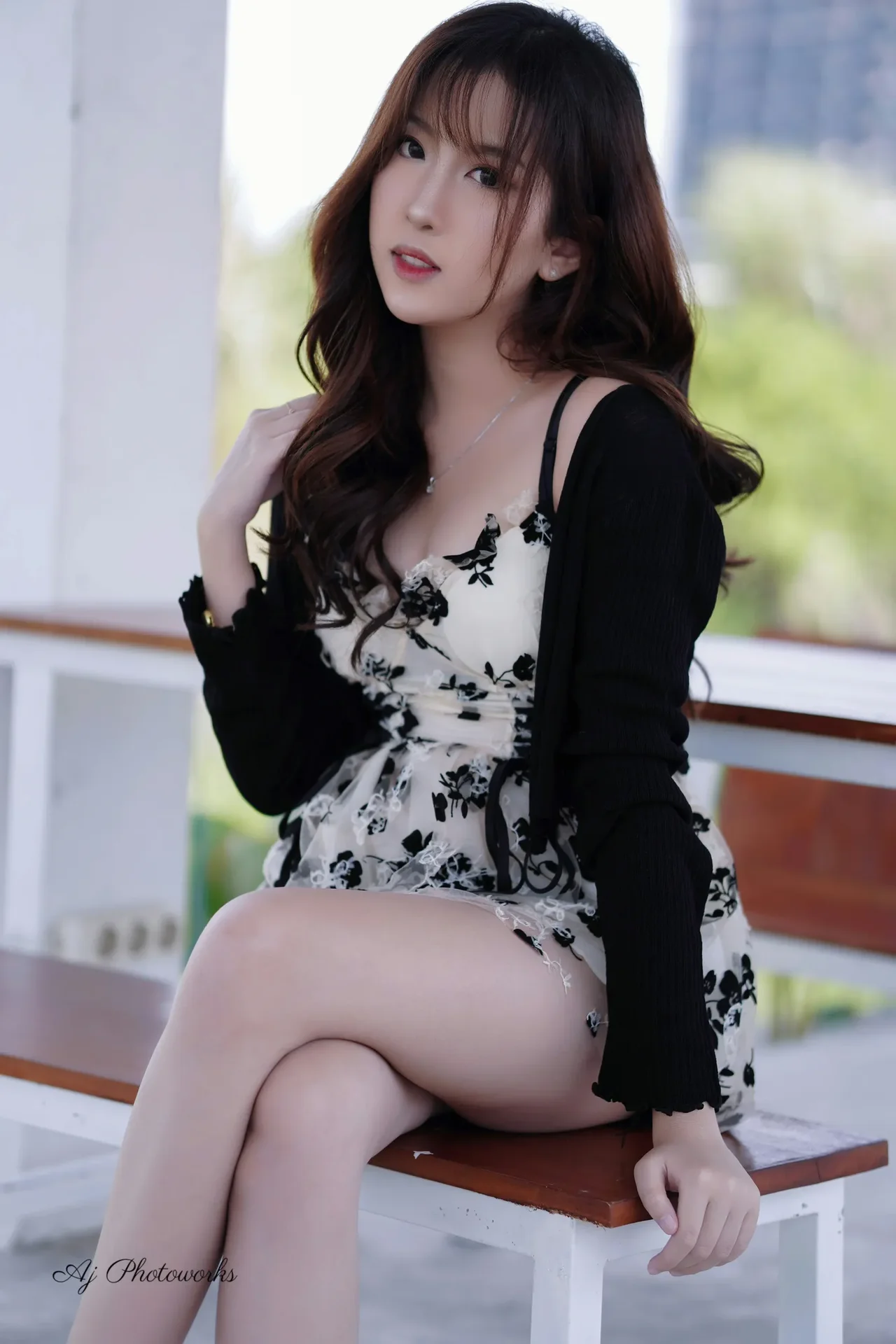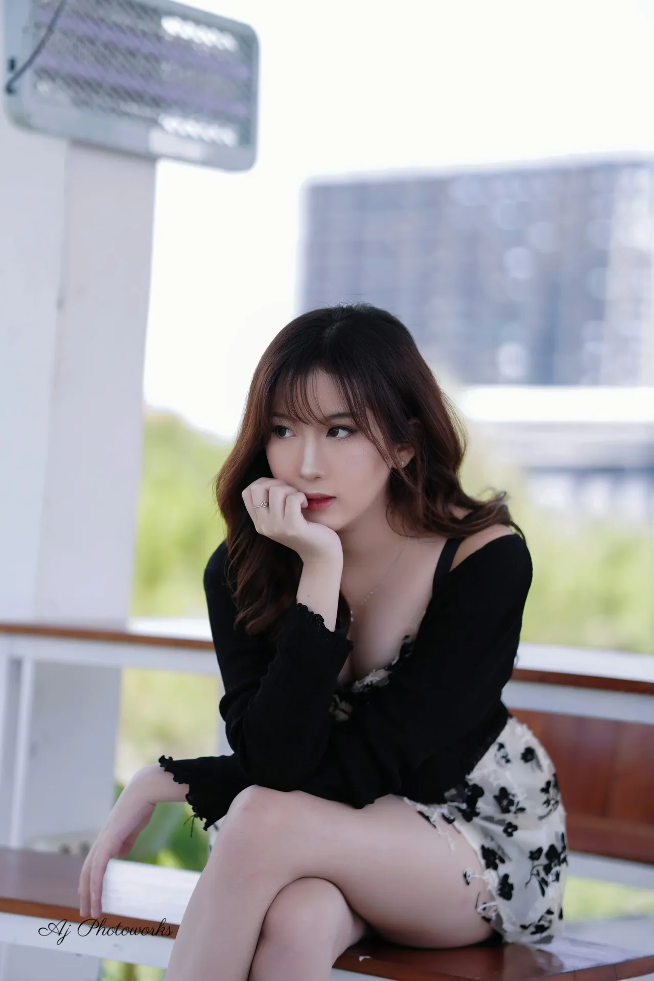 Elegant simplicity meets natural beauty in this portrait showcasing a blend of casual and refined elements against a serene outdoor backdrop.