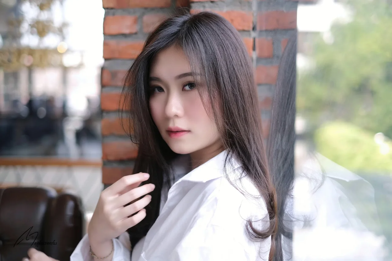 A blend of urban elegance and serene simplicity in portraiture.