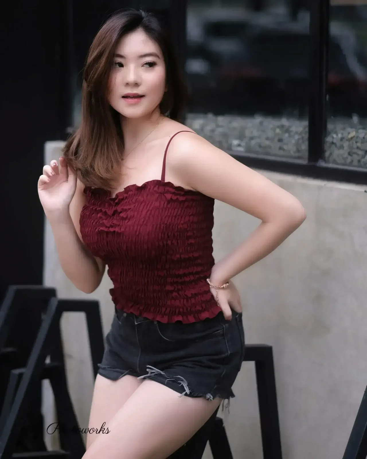 Modern urban fashion shots featuring a confident subject in vibrant maroon and teal attire, blending casual streetwear with editorial aesthetics against architectural backdrops.