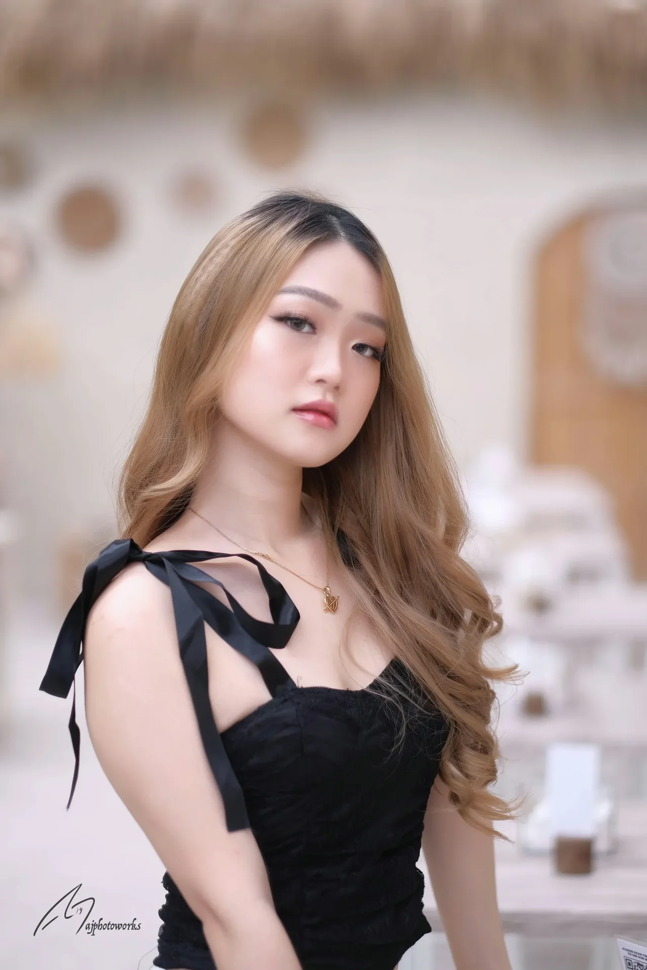Trendy café vibes with a chic ensemble featuring a cowl neck black top, white denim shorts, and bohemian-inspired accessories.