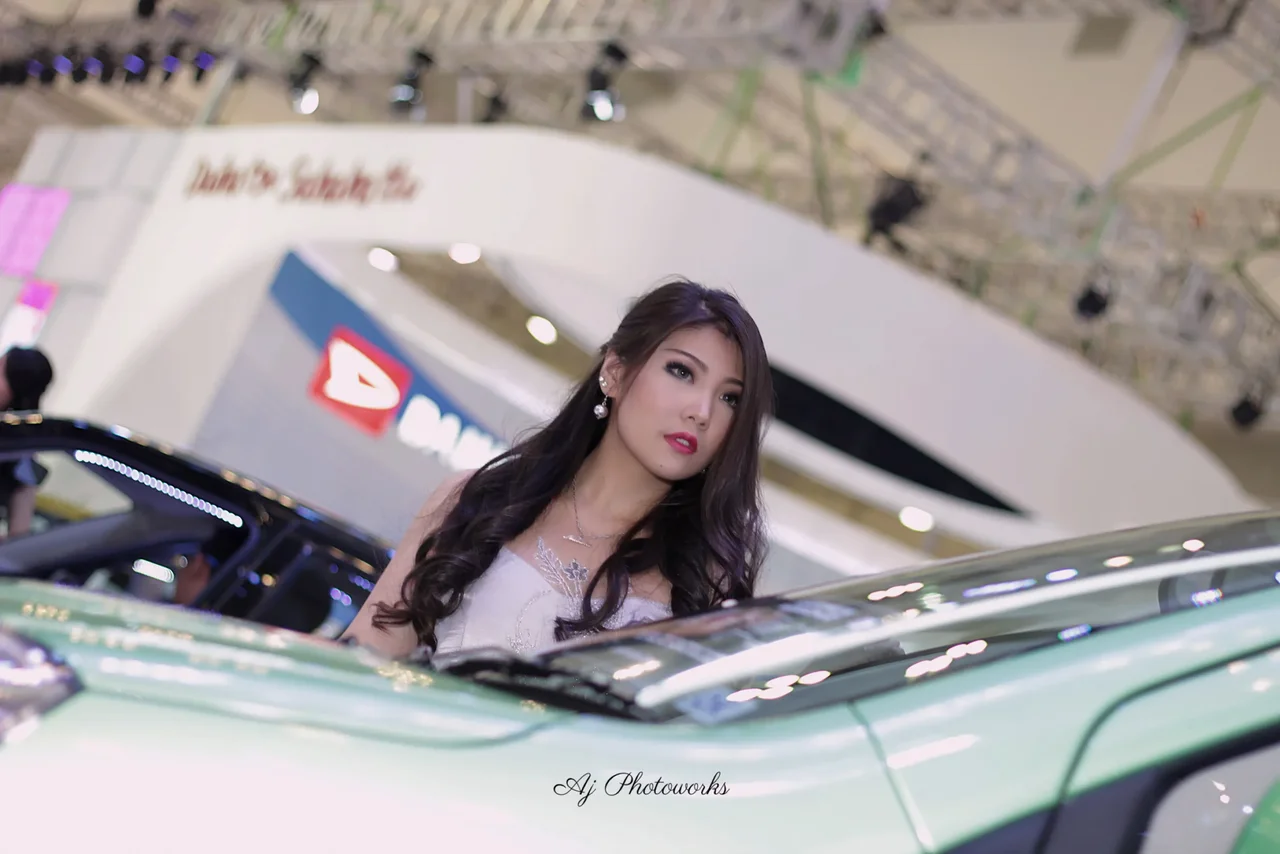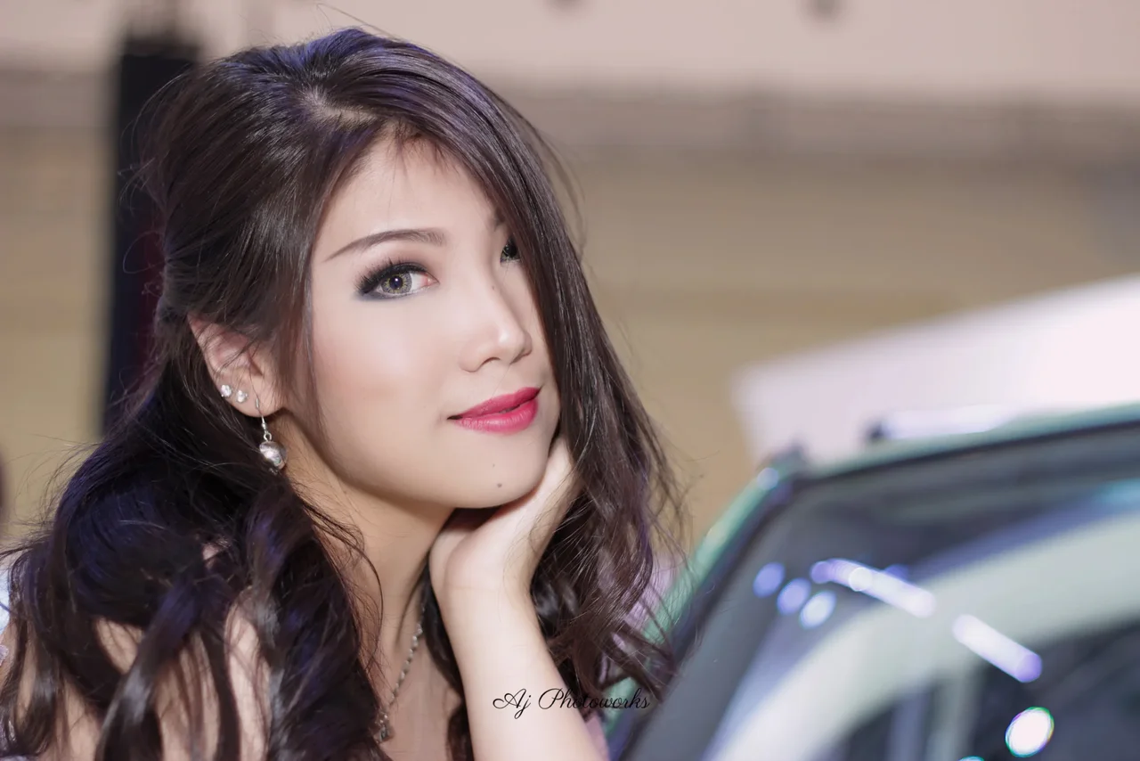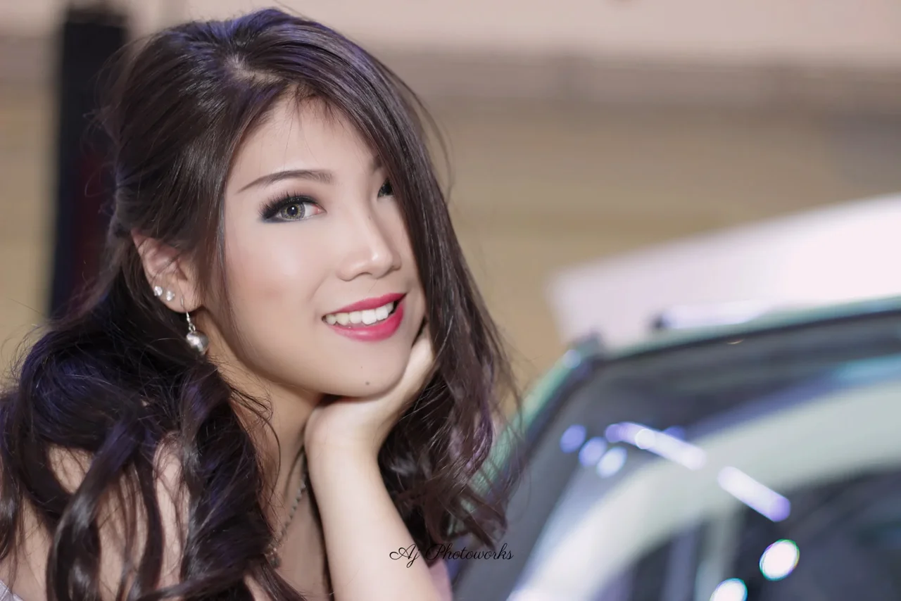 A captivating portrait amidst the sleek lines of automotive elegance.