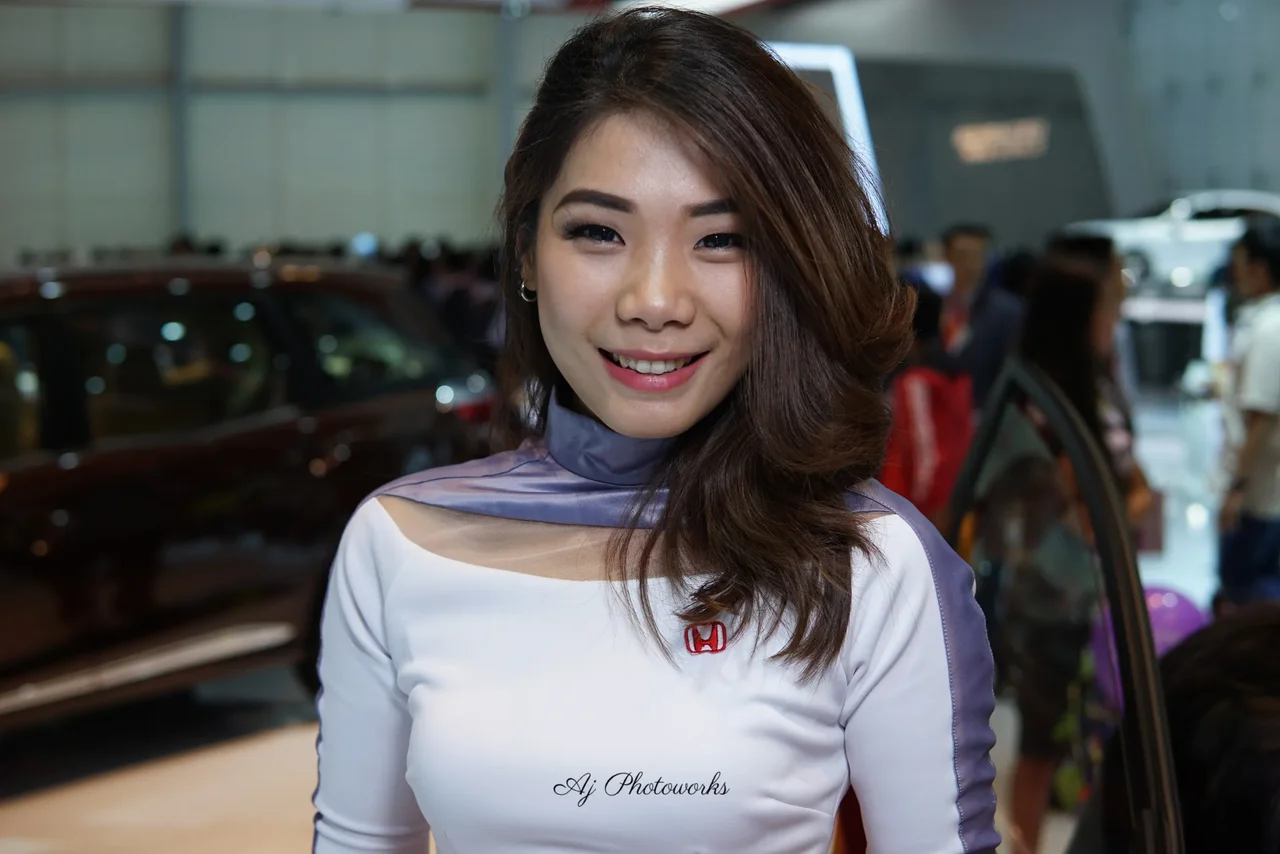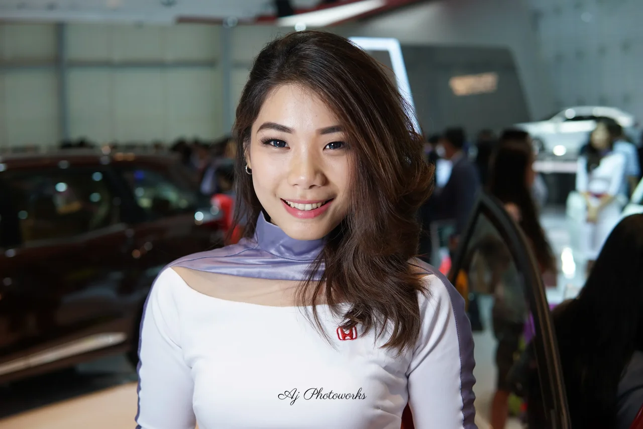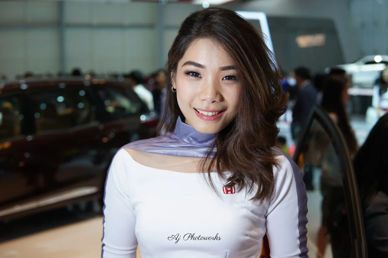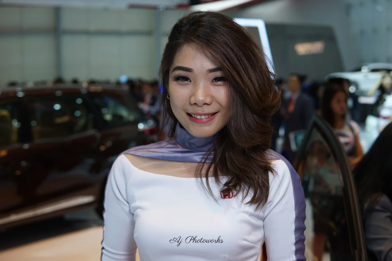 Professional ambiance with brand-focused expression, woven into an automotive exhibition setting.