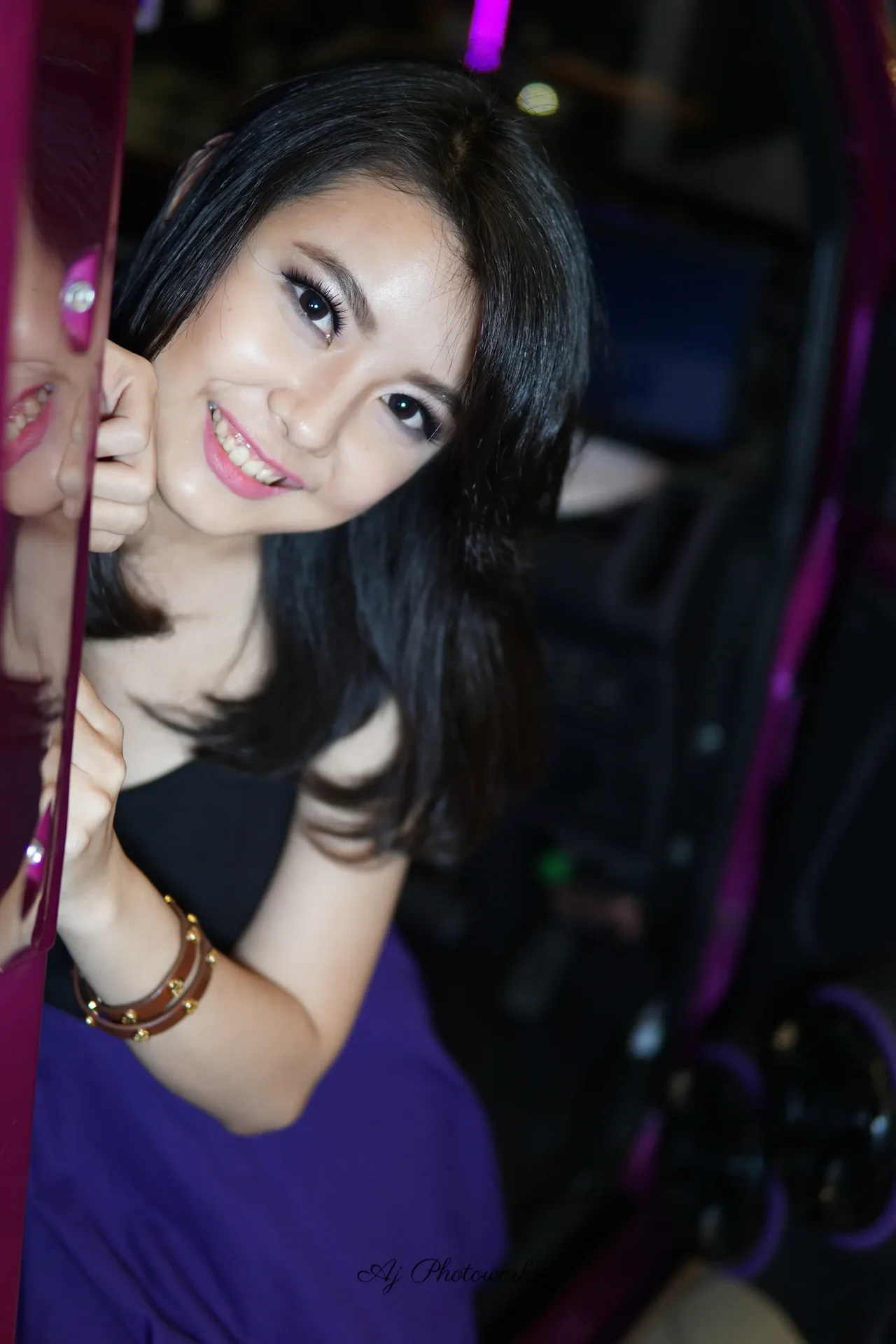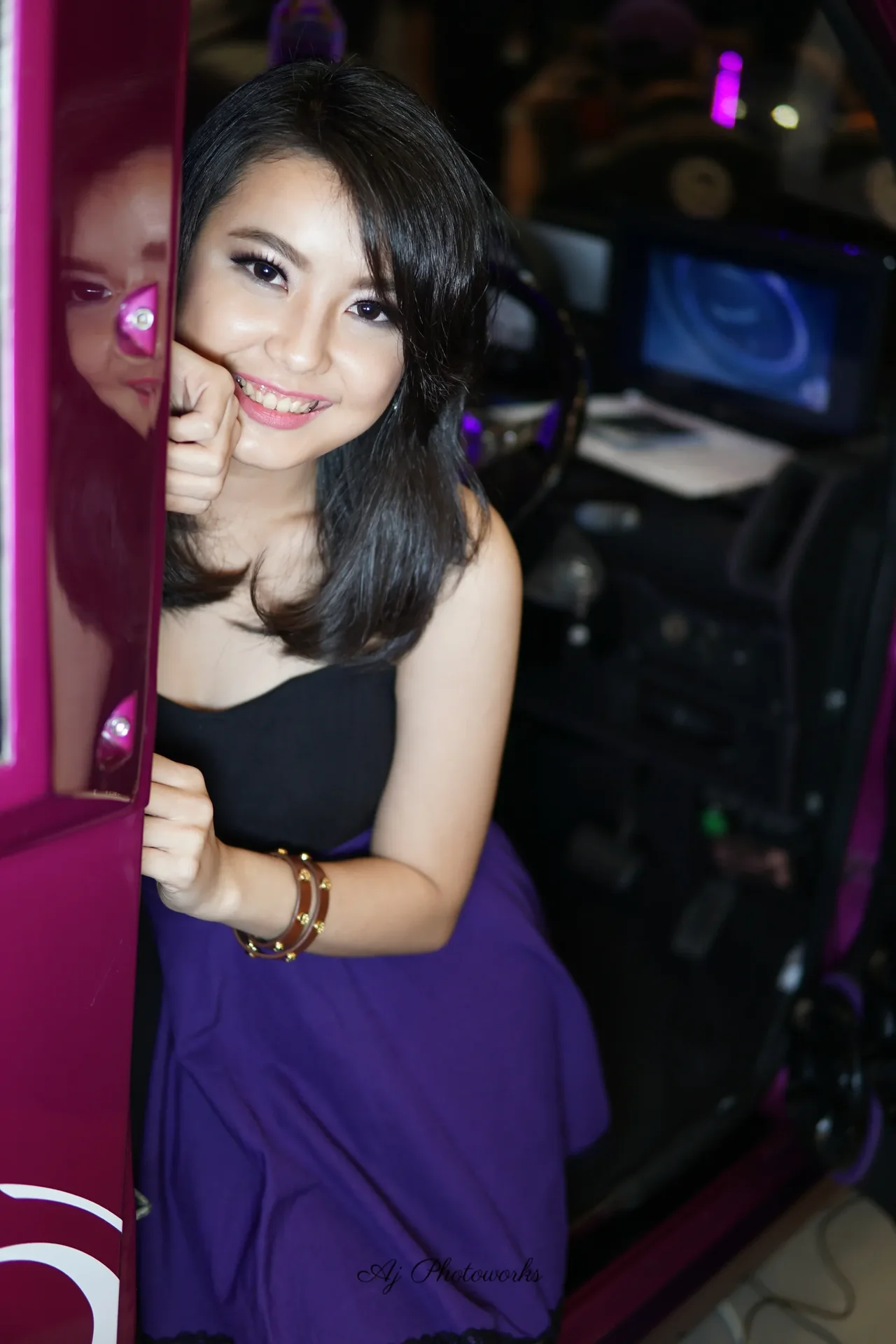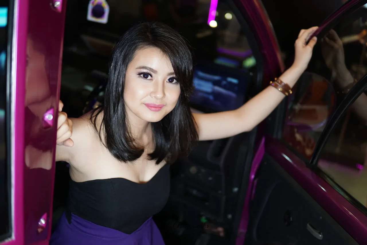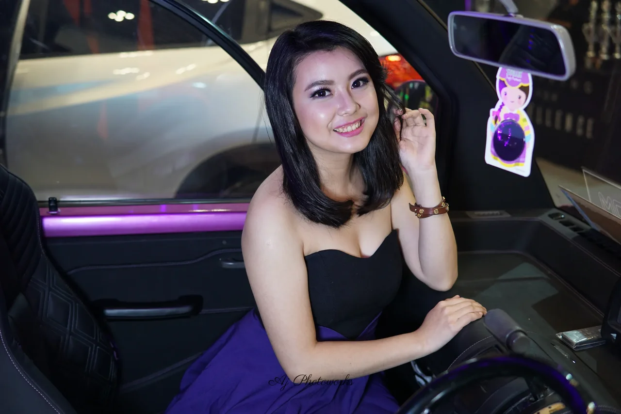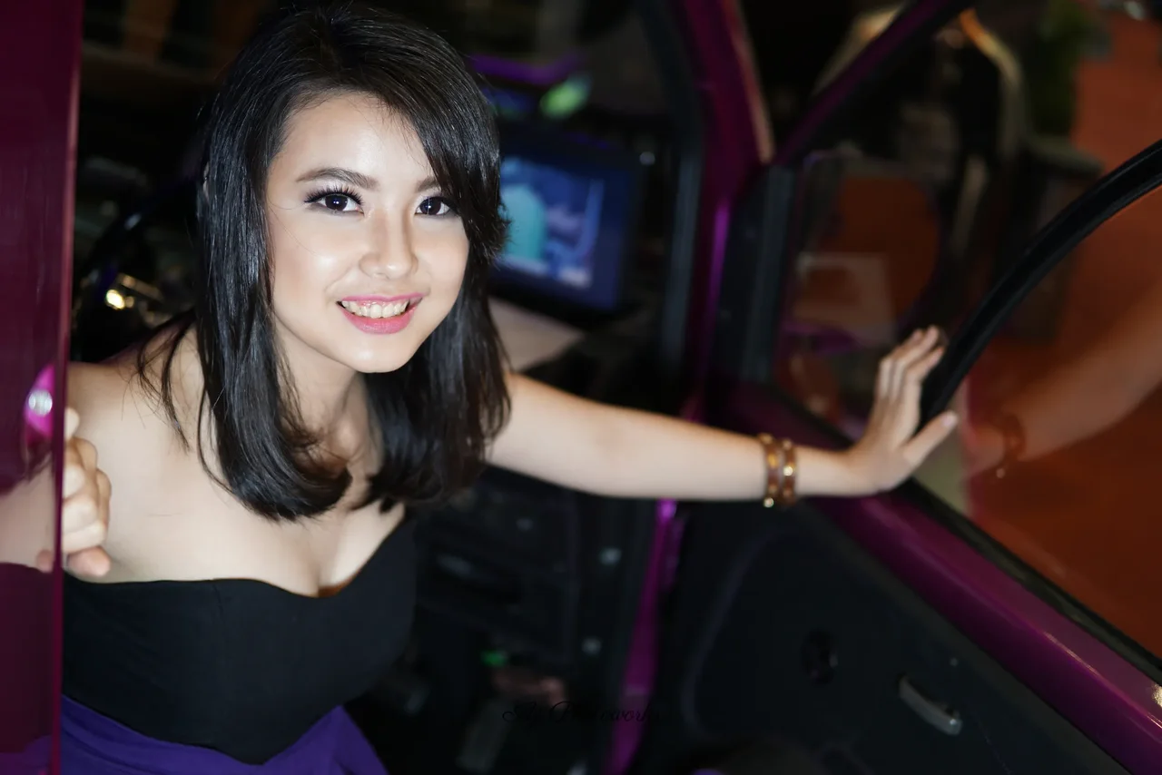 Elegance meets automotive artistry: A confident pose in a sleek, stylish setting highlights the intersection of fashion and luxury.