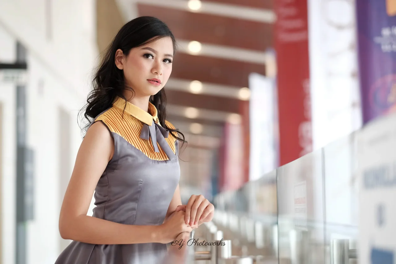 Radiant confidence in light gray and yellow, blending urban elegance with soft natural light.