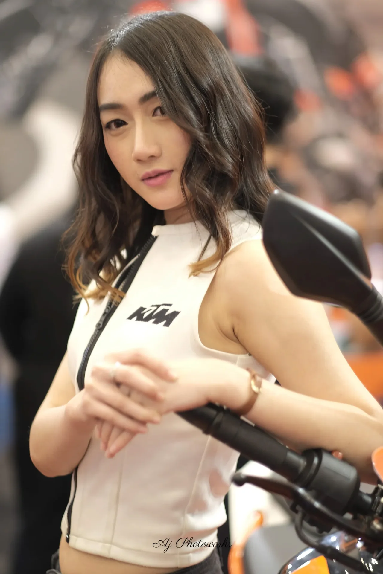 A confident pose meets high-octane style on the sunshine-tinged asphalt, where neon vibes and muscle machines collide.