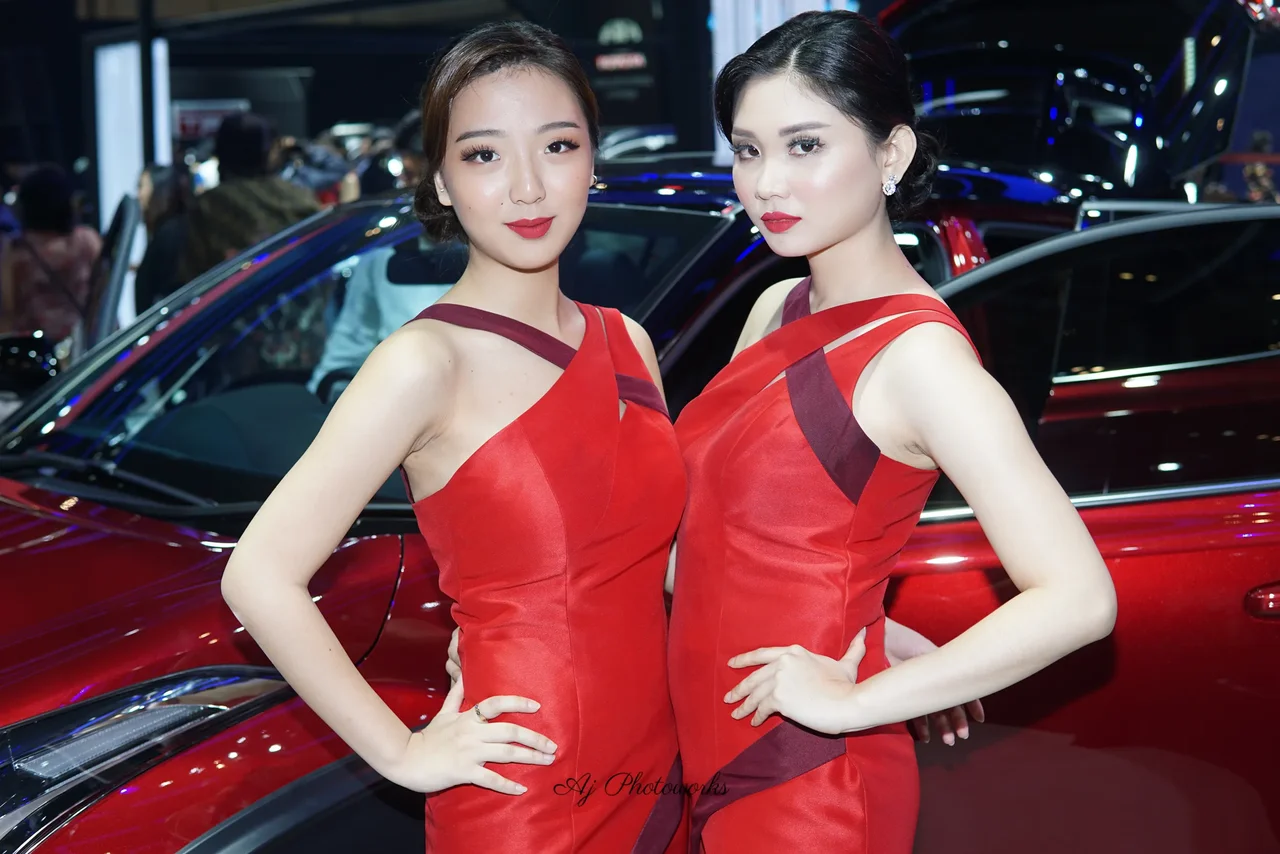 Elegance in red at the car show expo, where style meets innovation.