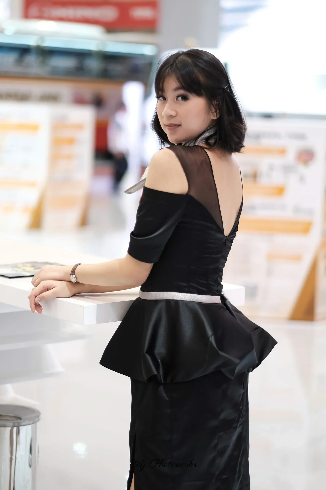 Elegance meets professionalism at an industrial expo.