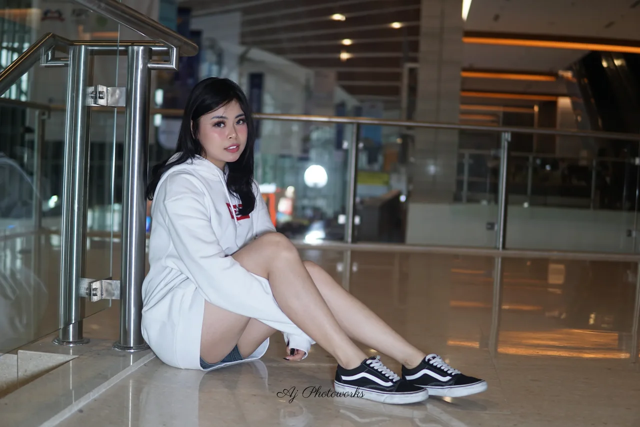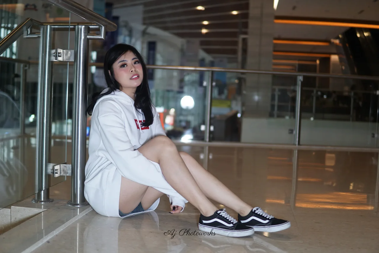Casual vibes in a modern space. Capturing a moment of relaxed confidence.
