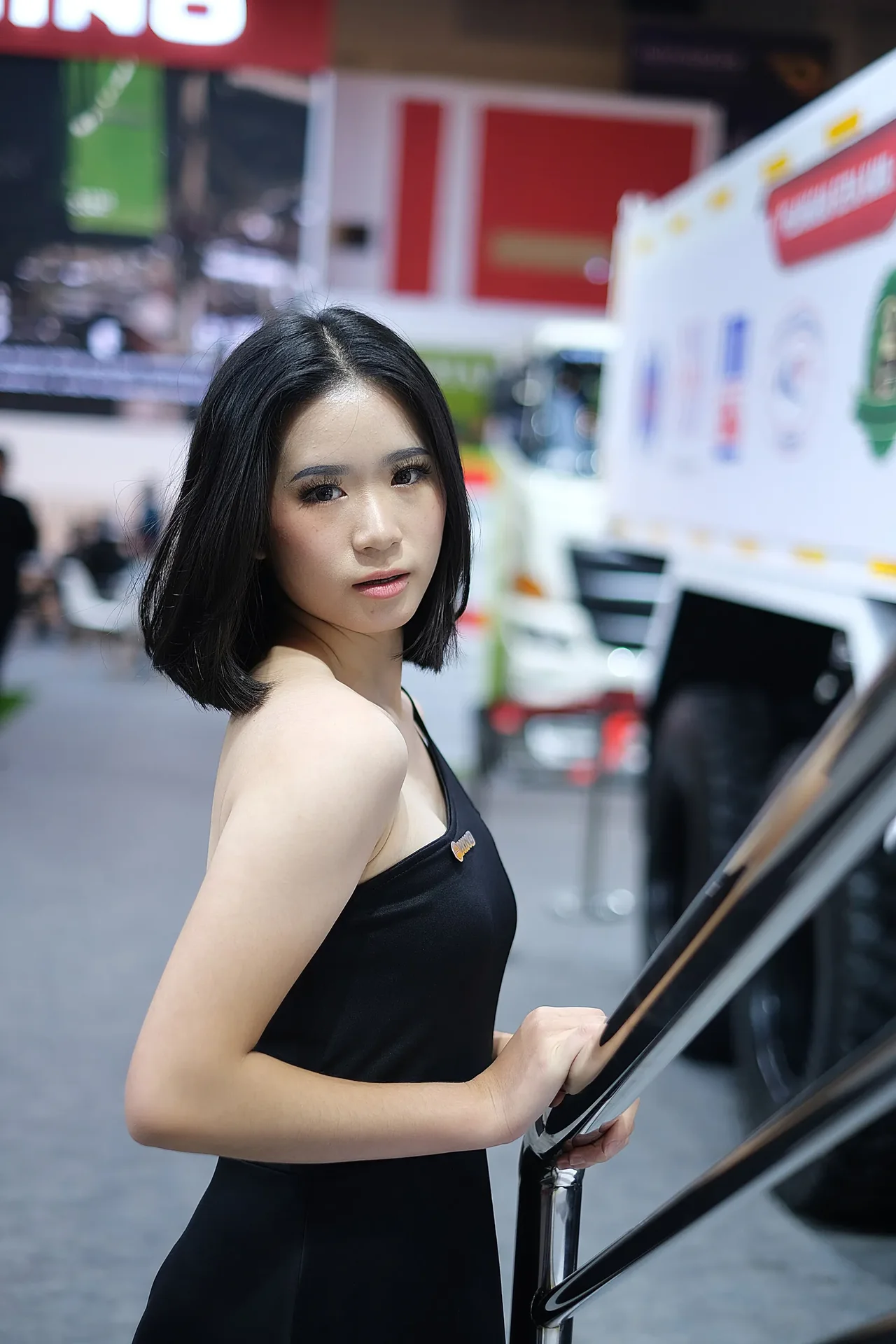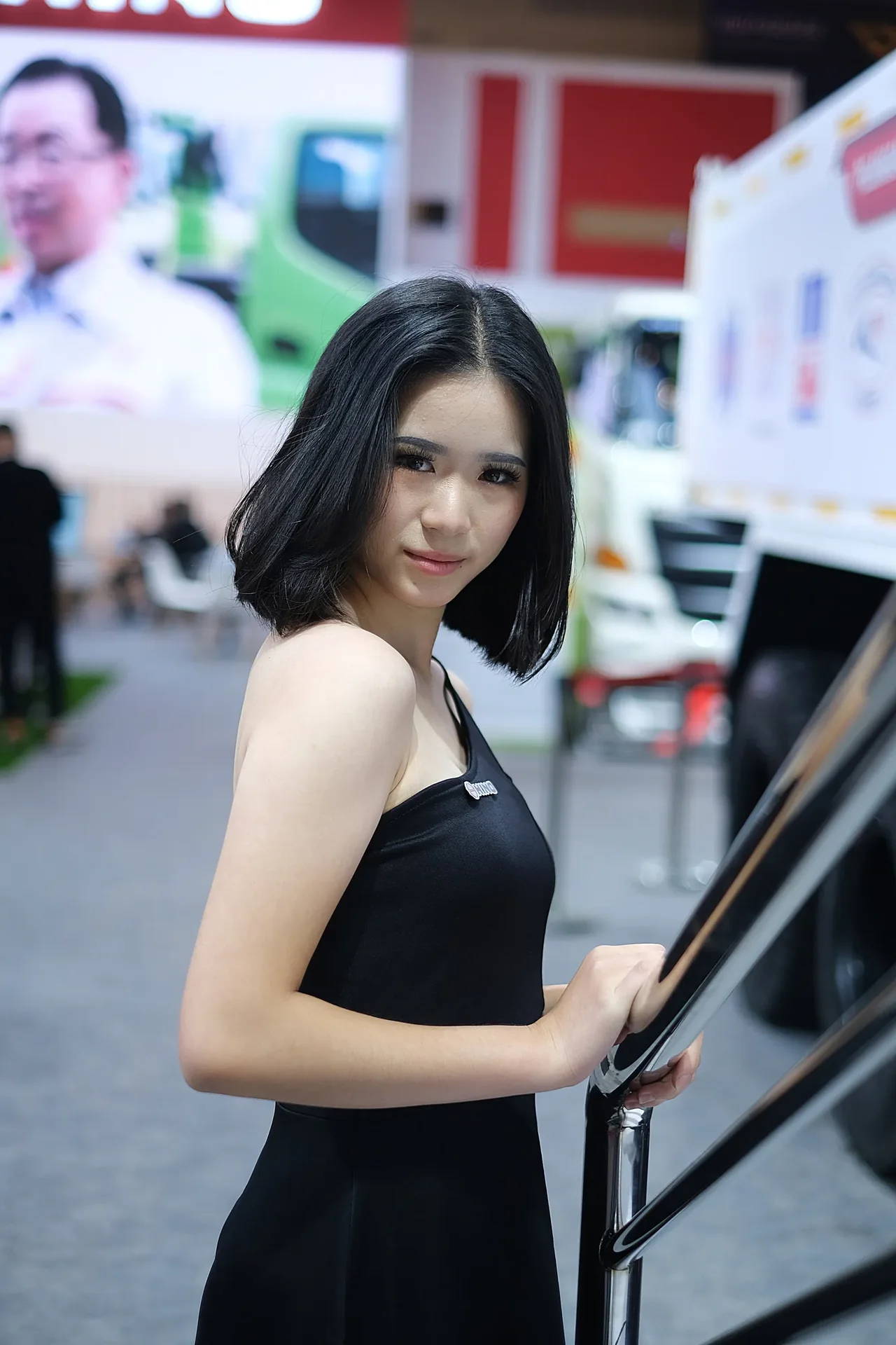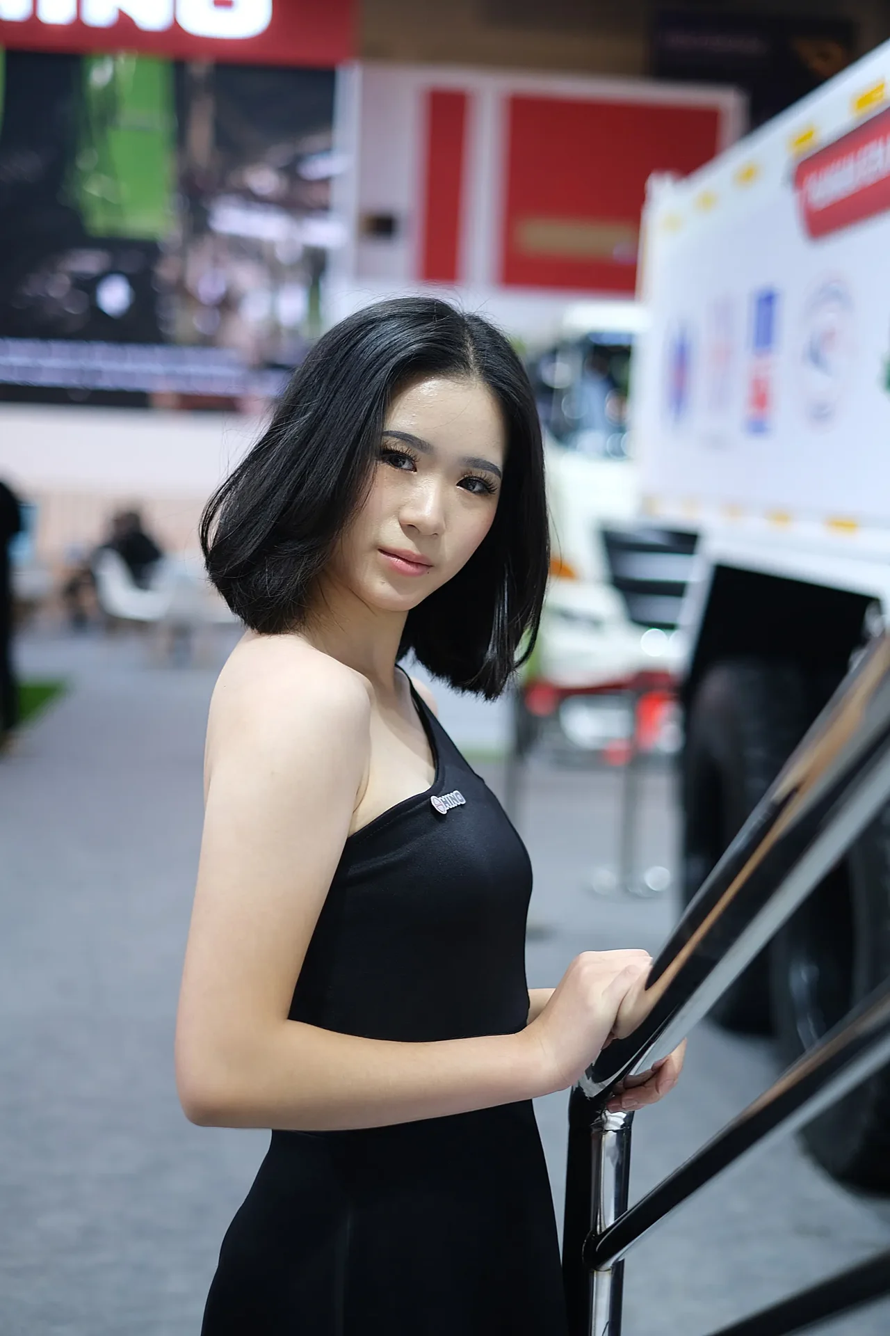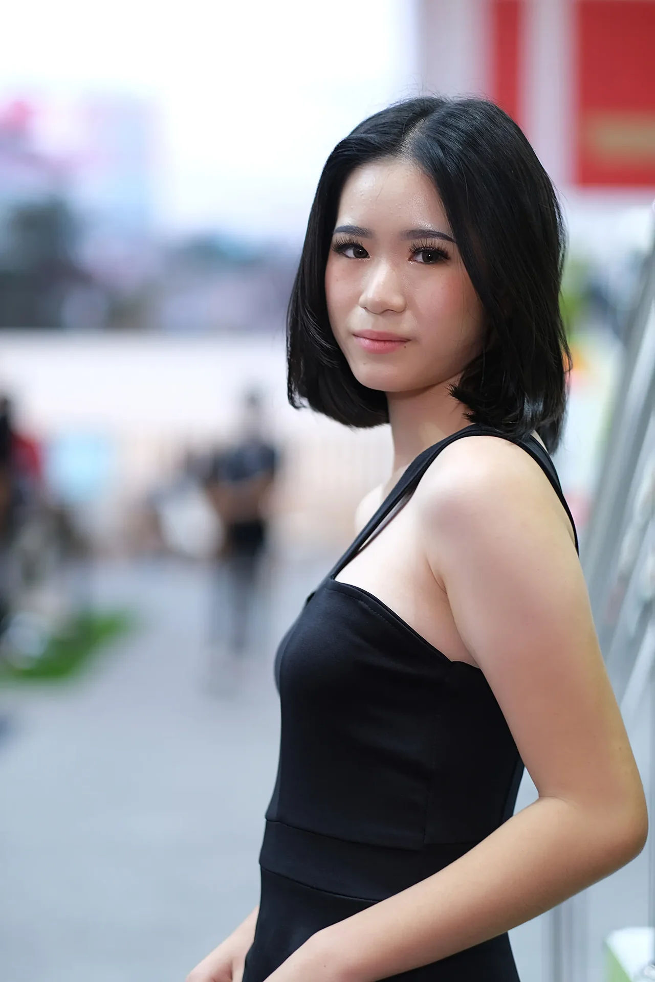 Modern elegance captured in a dynamic expo setting, highlighting sleek fashion and professional allure.