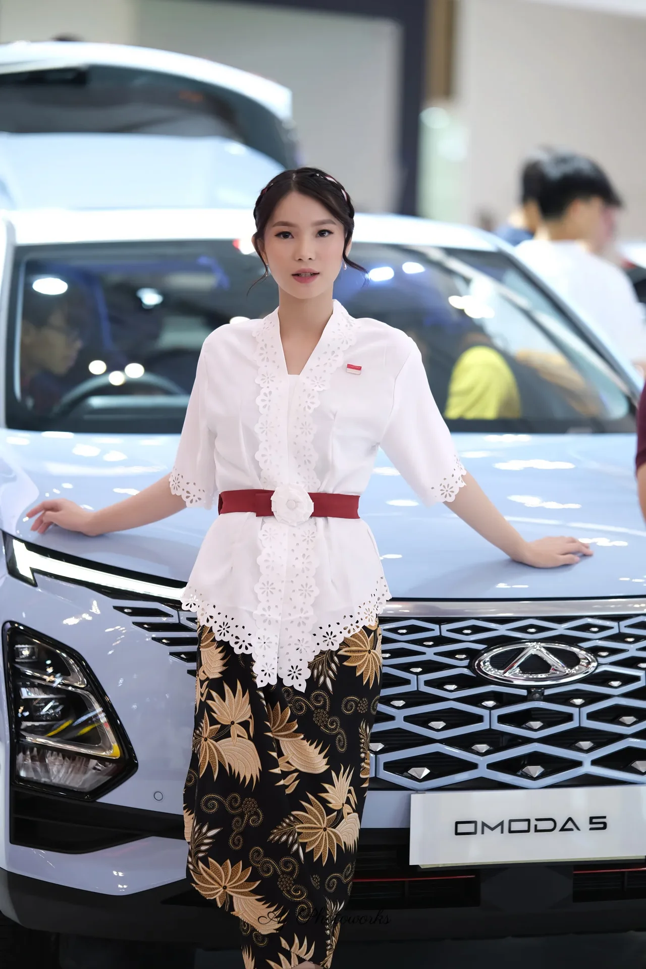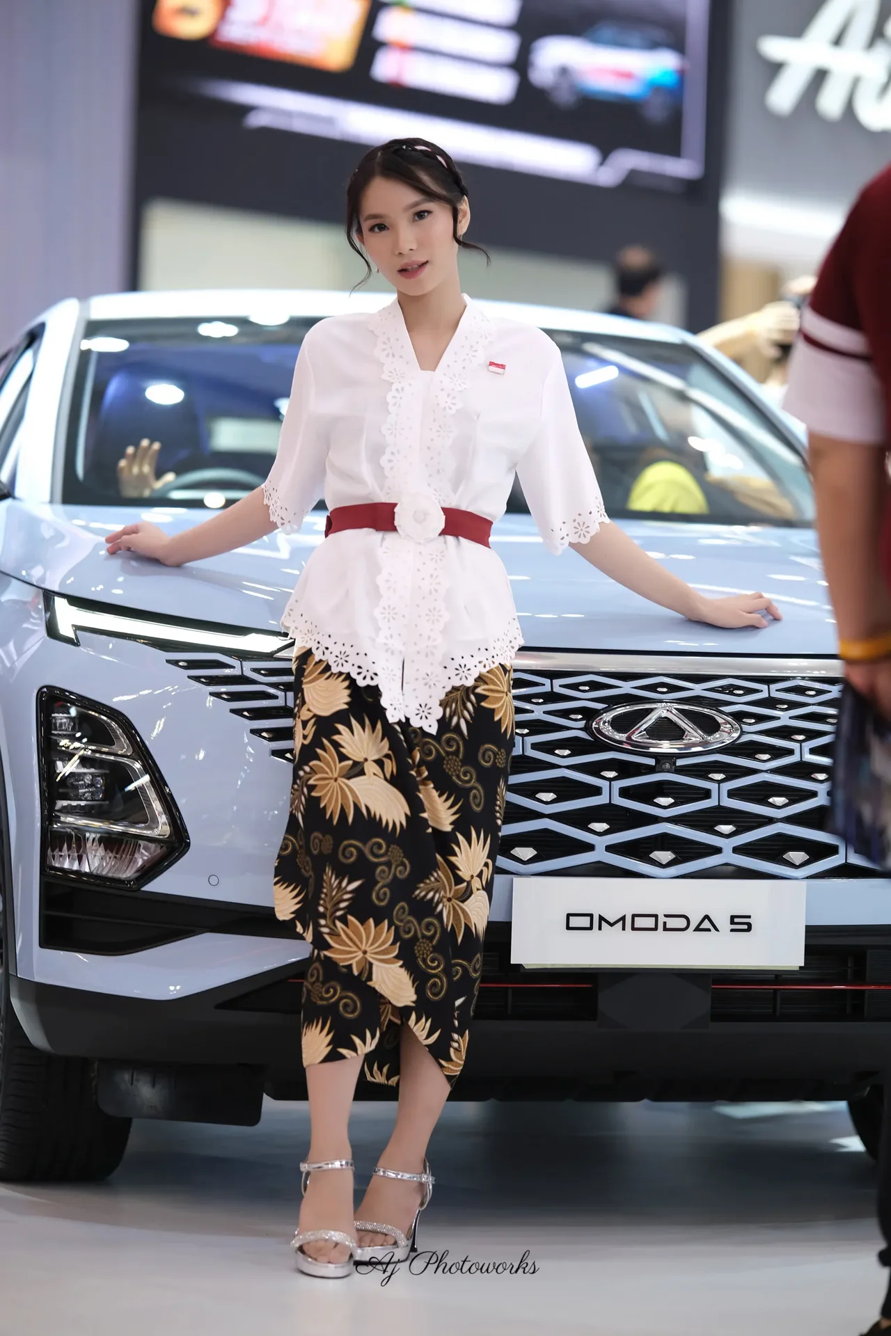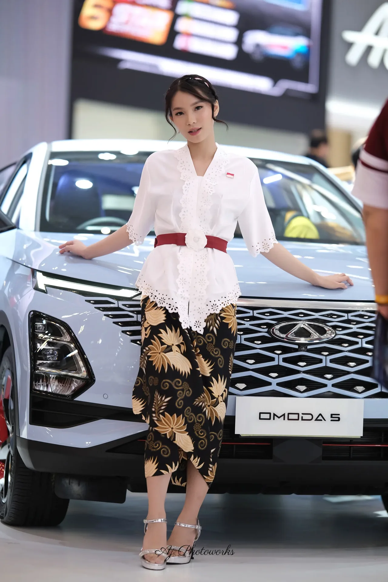 Traditional elegance meets modern automotive allure in a fusion of cultural attire and dynamic motion captures.