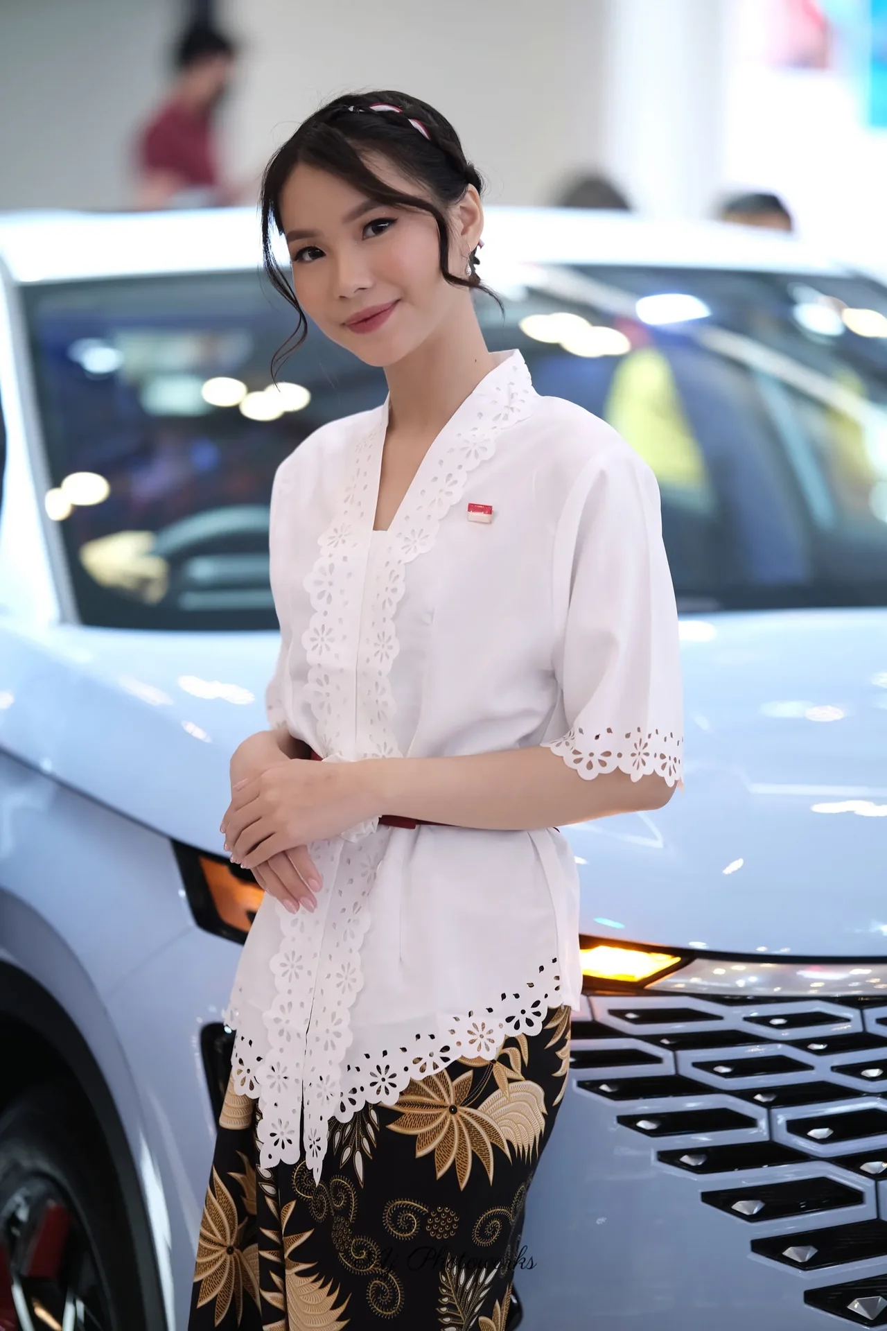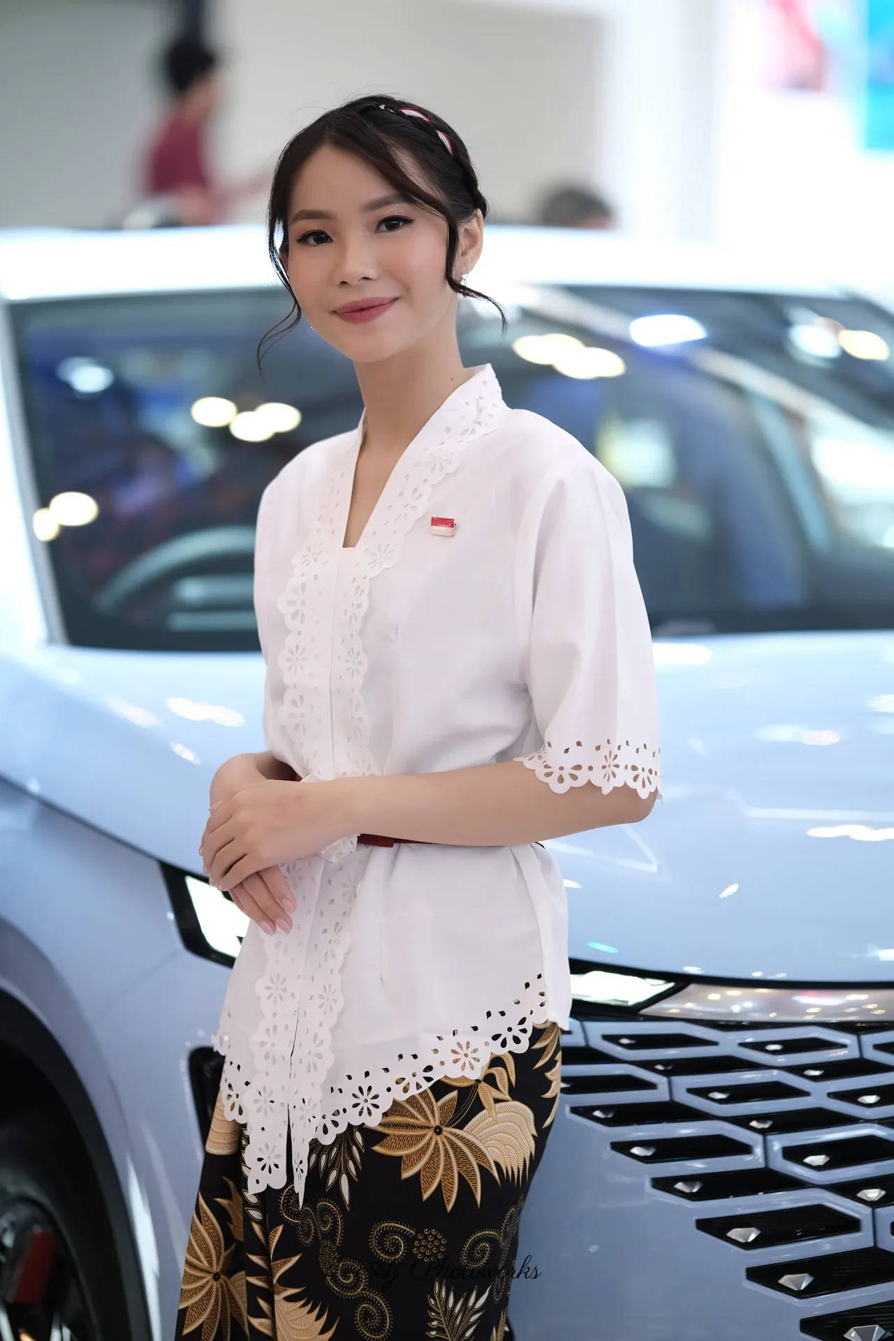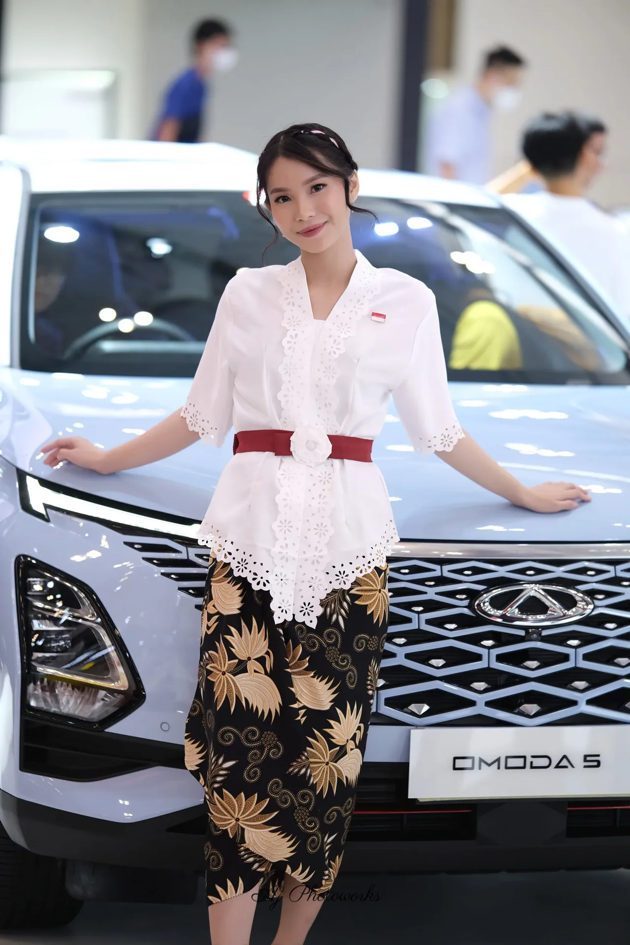 Traditional elegance meets modern automotive allure in a fusion of cultural attire and dynamic motion captures.