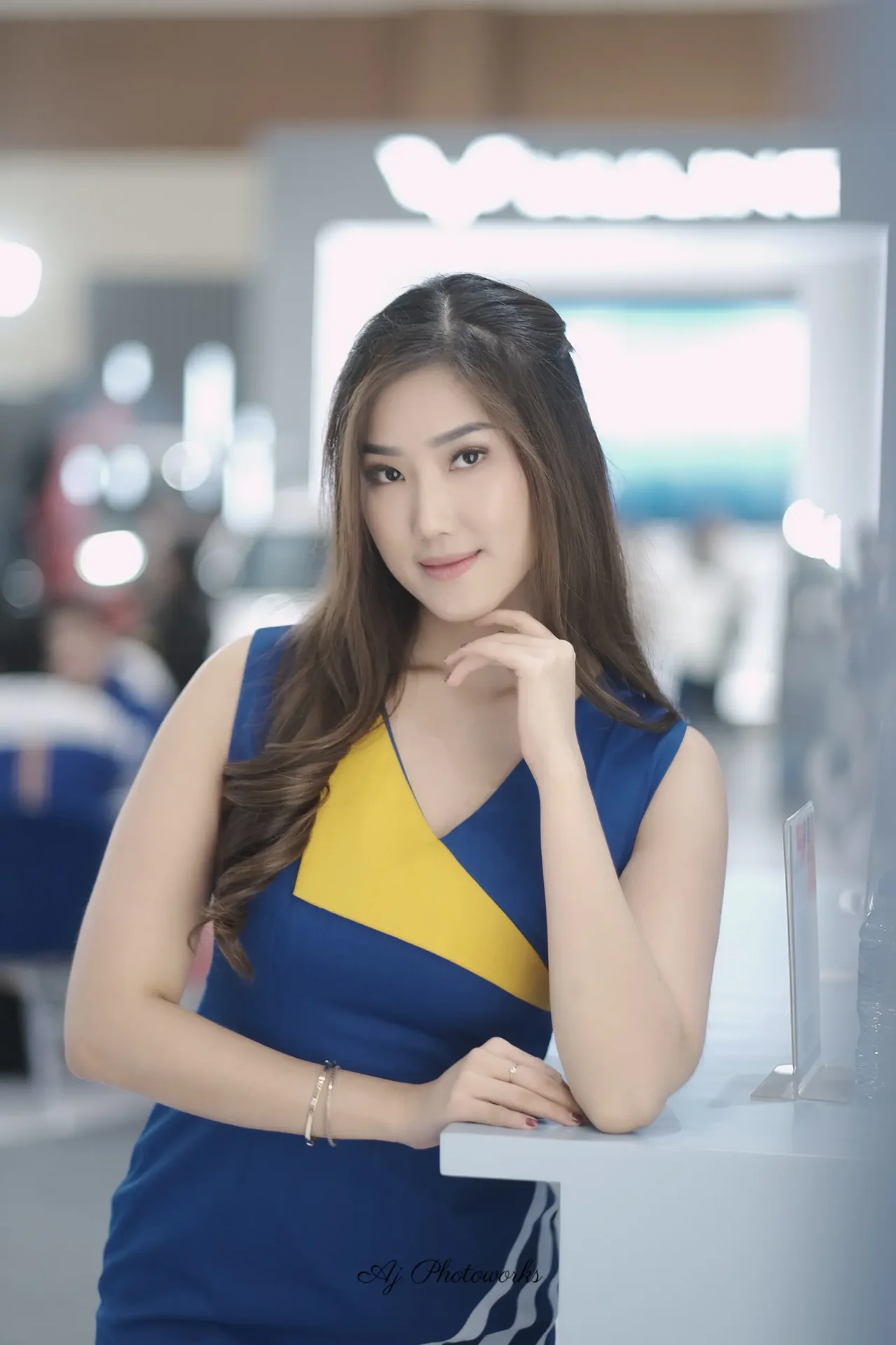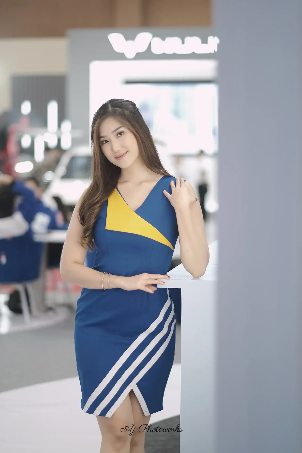 Vibrant sports-inspired fashion meets automotive allure in a dynamic exhibition showcase.