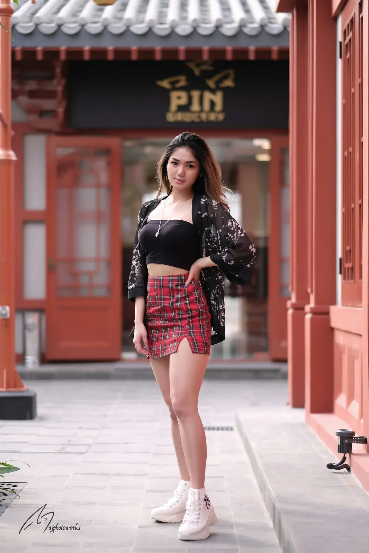 A dynamic fusion of modern and traditional aesthetics, captured through vibrant urban landscapes and striking fashion contrasts.