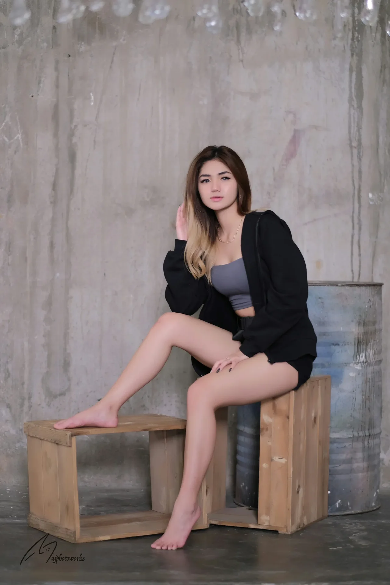 Thoughtful solitude meets urban minimalism in this evocative monochrome portrait.