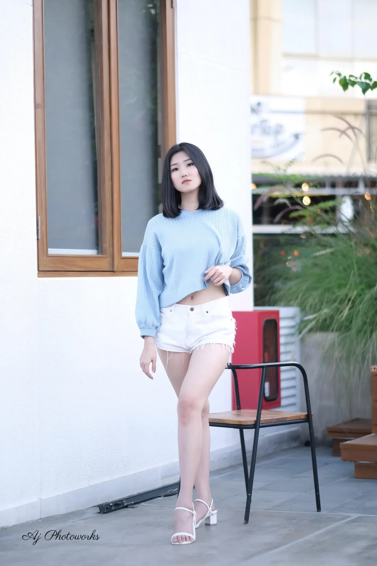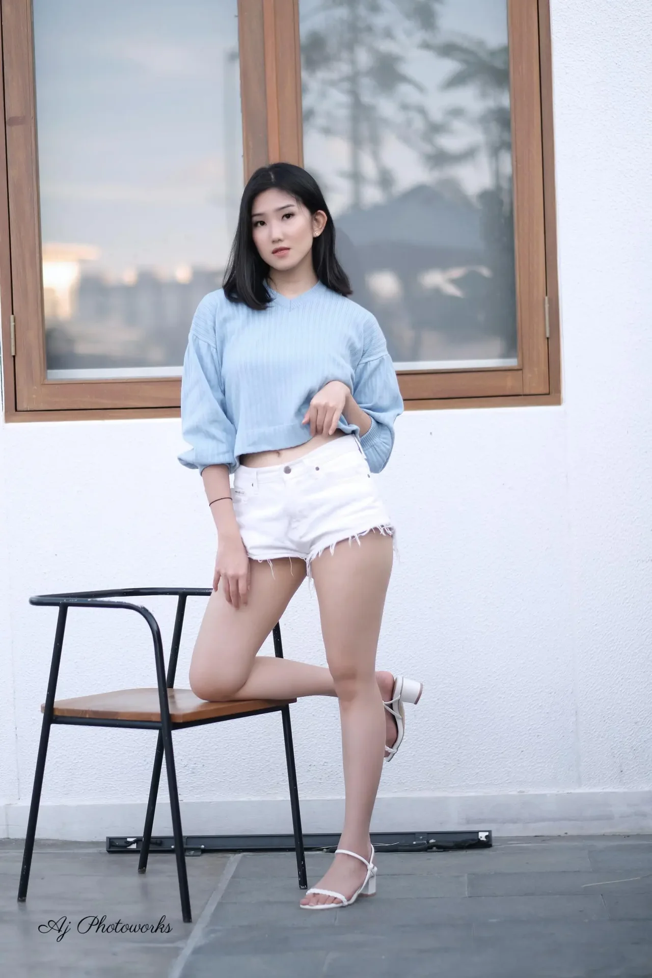 Stylish summer urban portrait with a relaxed vibe, highlighting clean lines and effortless fashion.