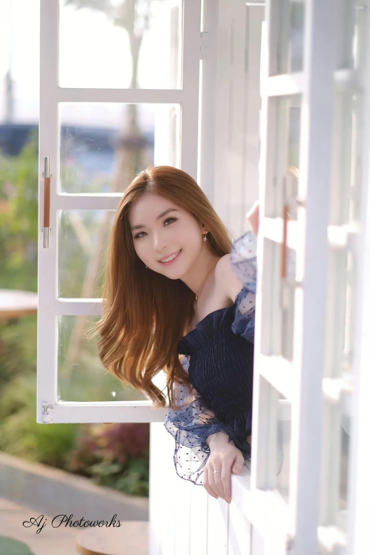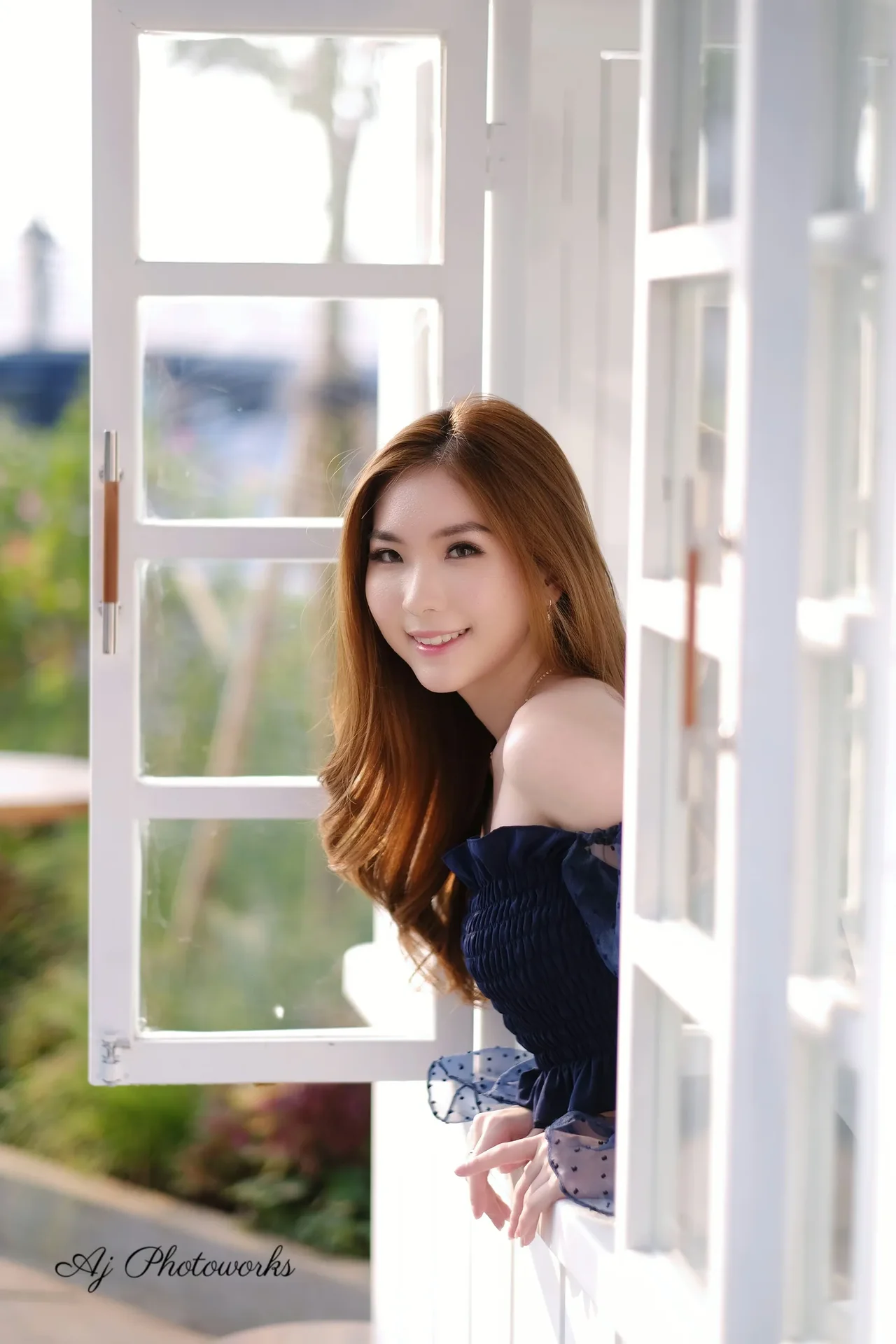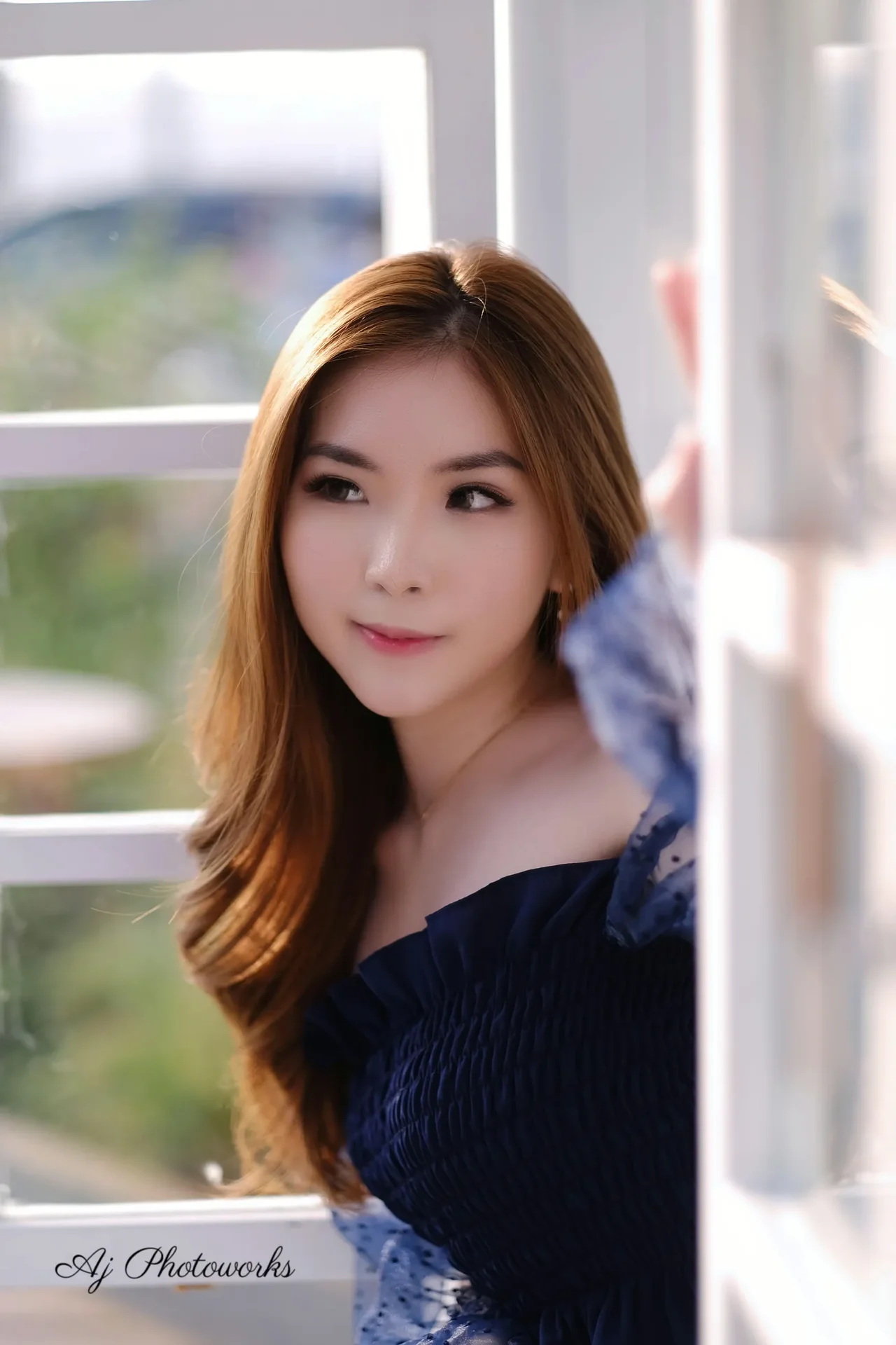 Warm tones and serene ambiance blend in this portrait of contemplation by the garden window.