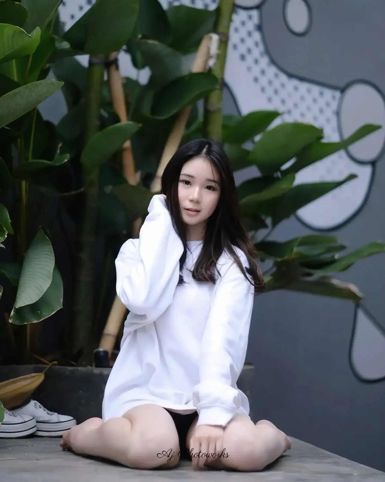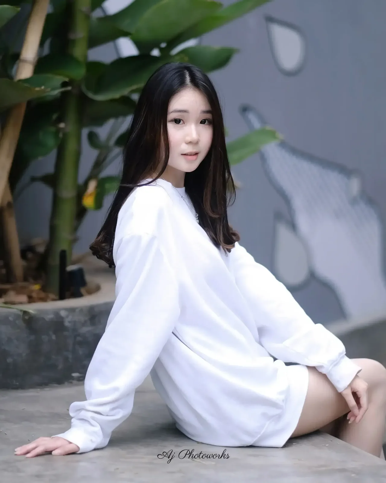 Elegant simplicity meets urban serenity in a fashion-forward portrait.