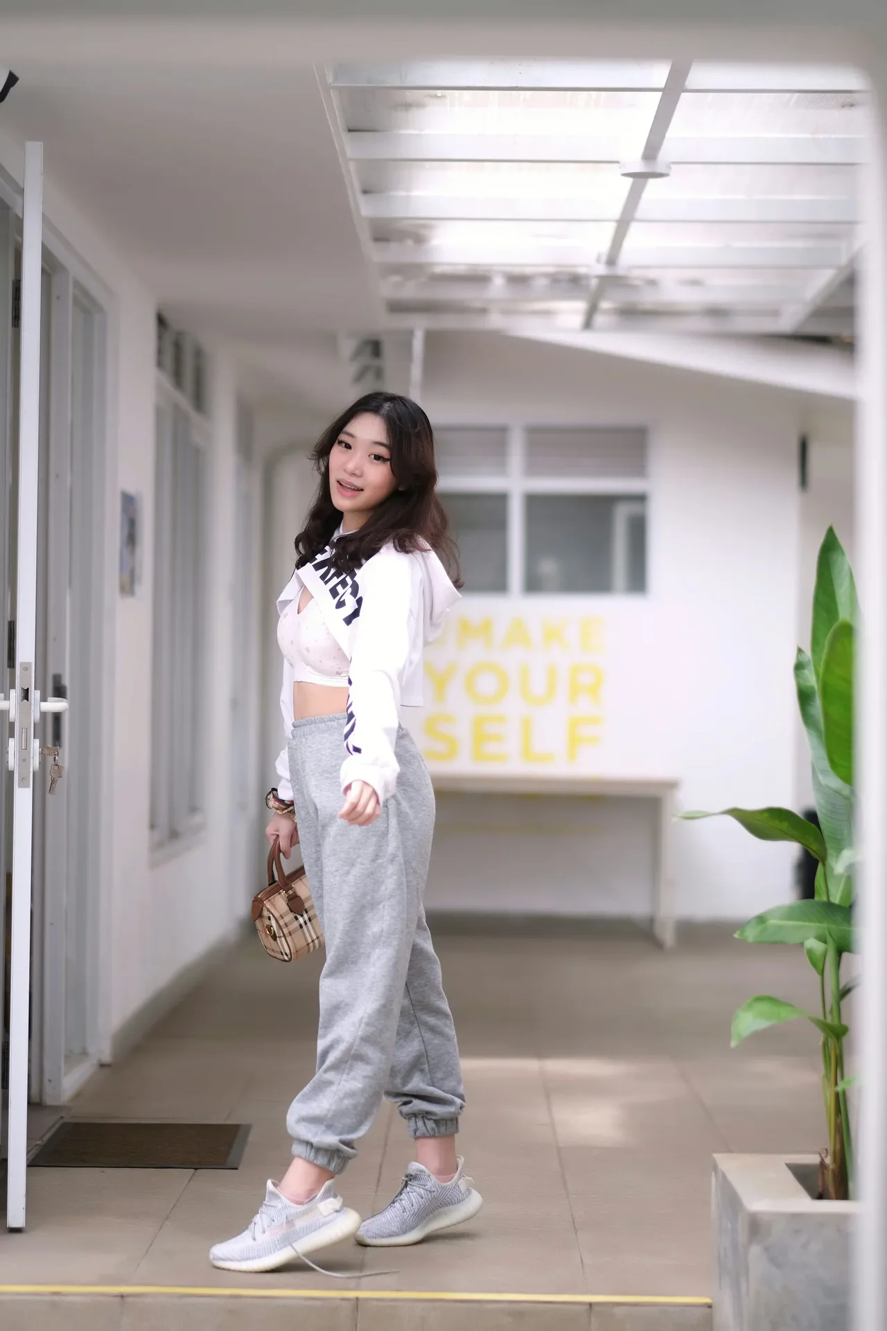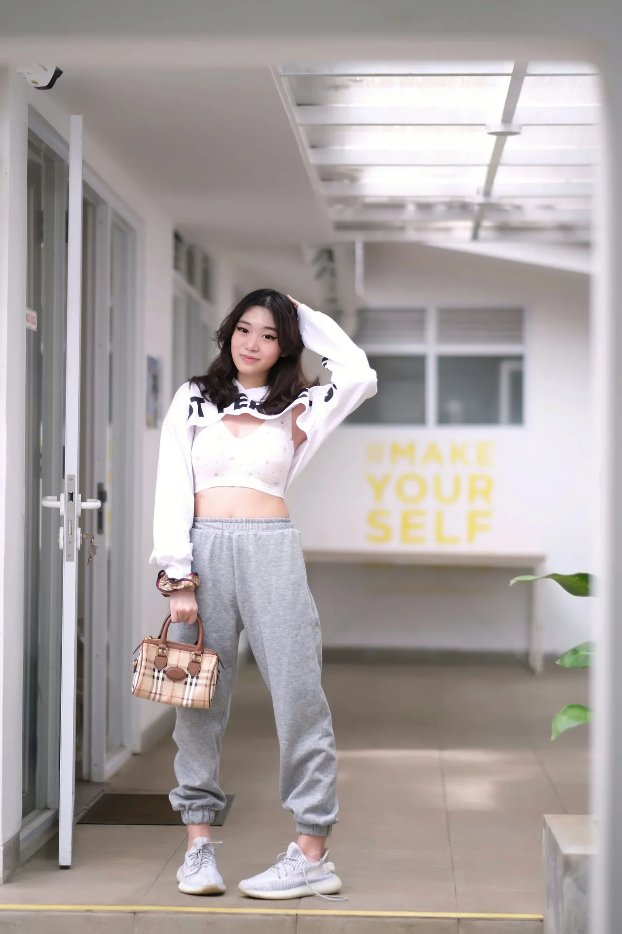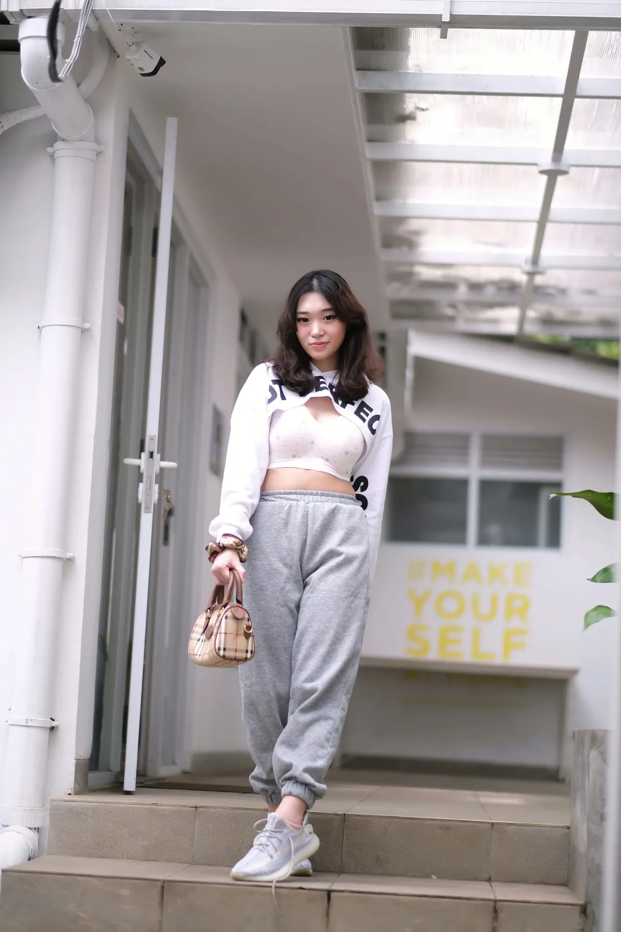 Casual street style meets everyday confidence in a modern urban setting.