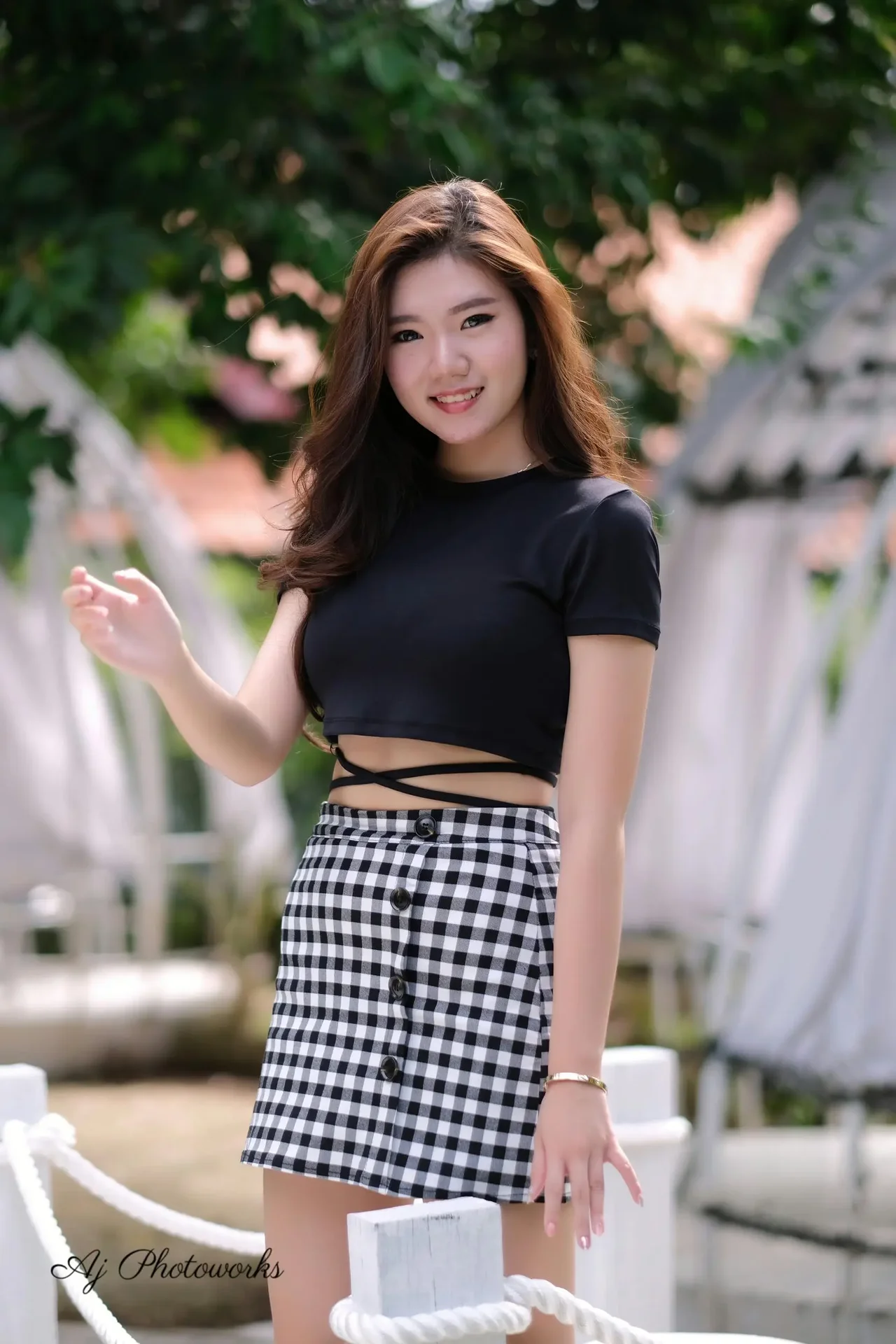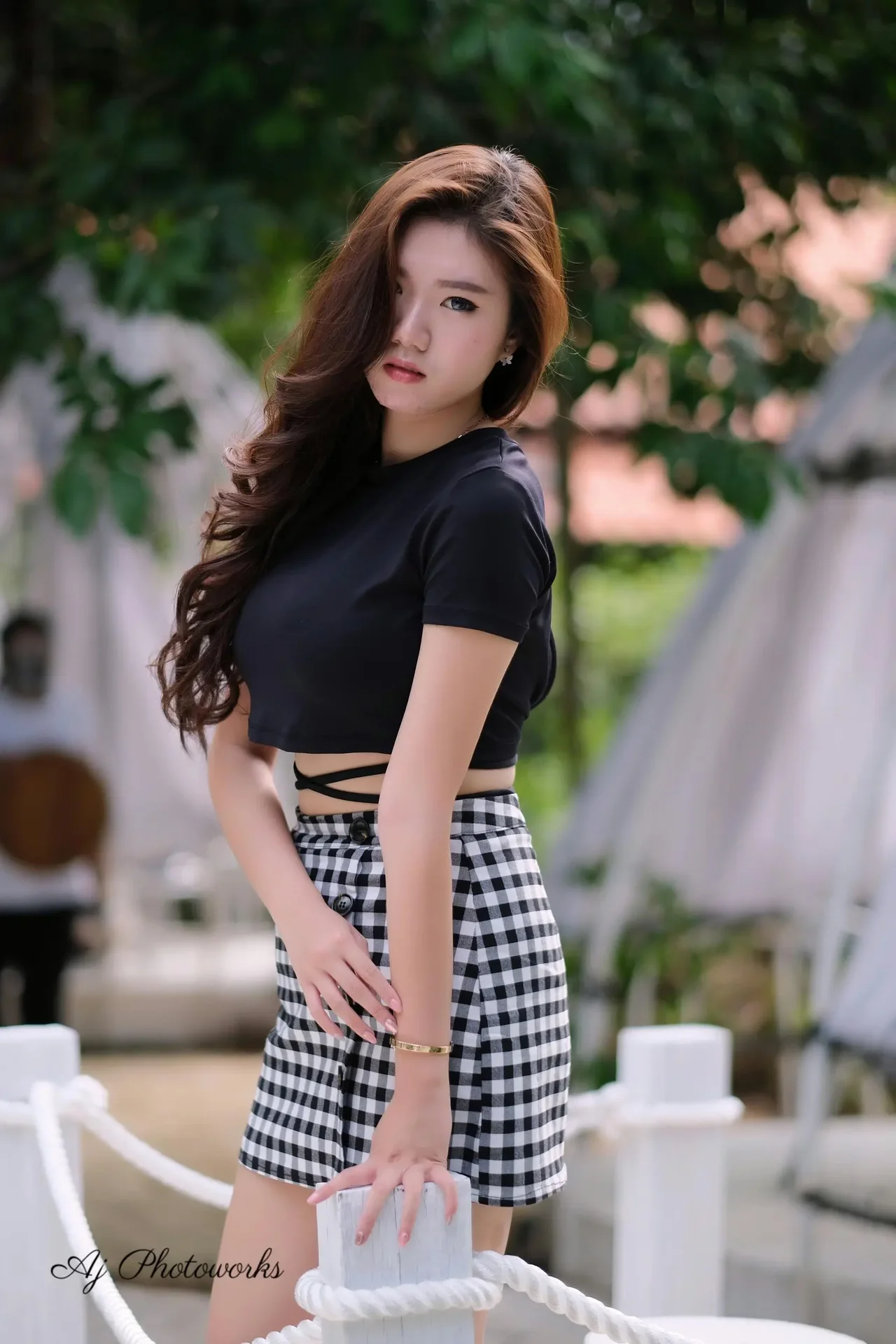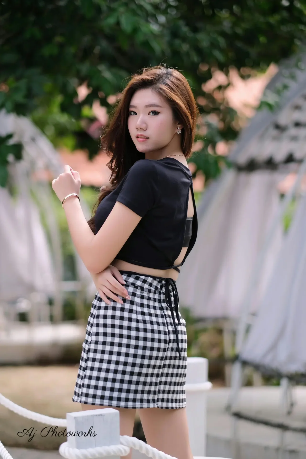 A dance of contrasts: structured patterns against organic nature, where fashion meets the simplicity of light.