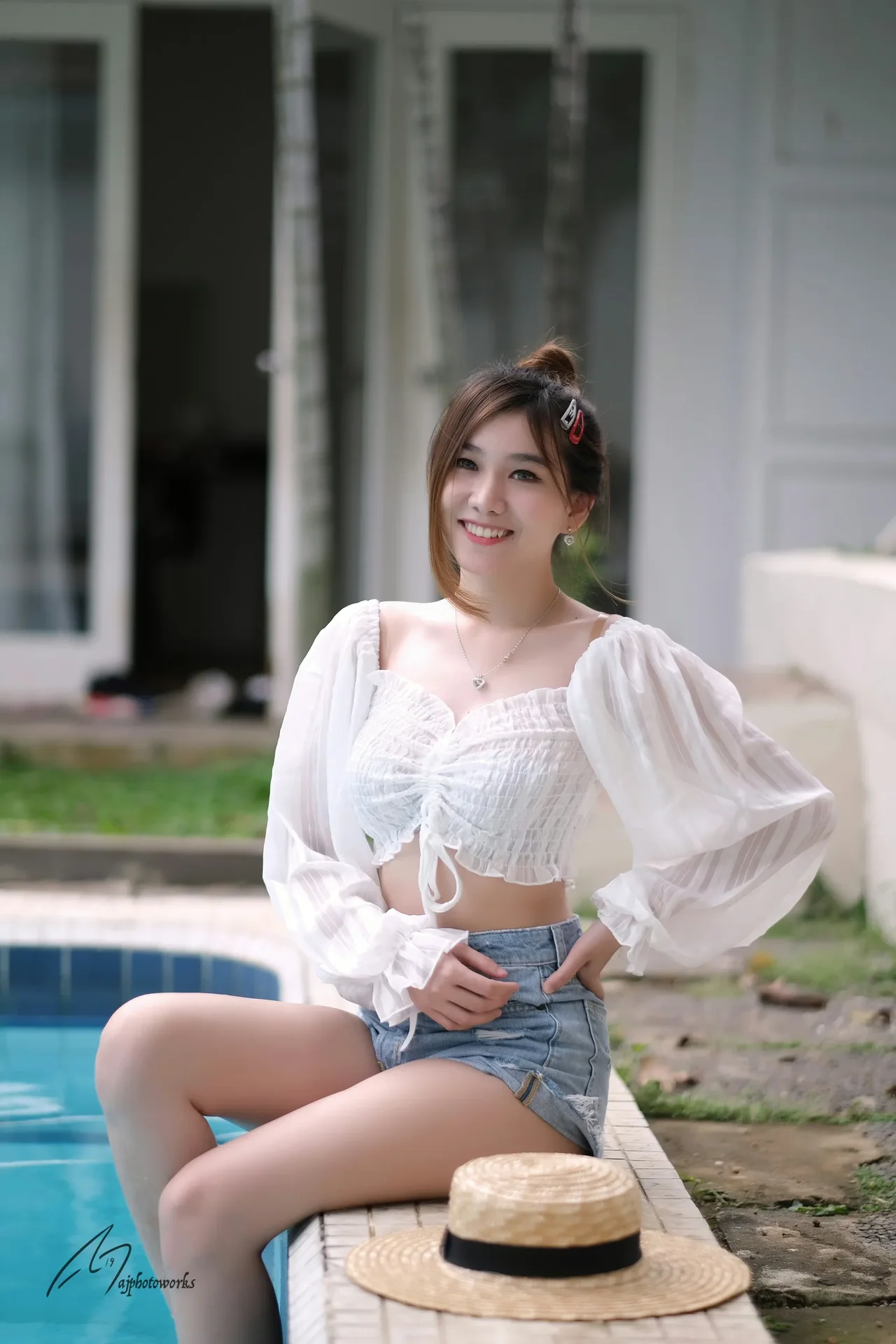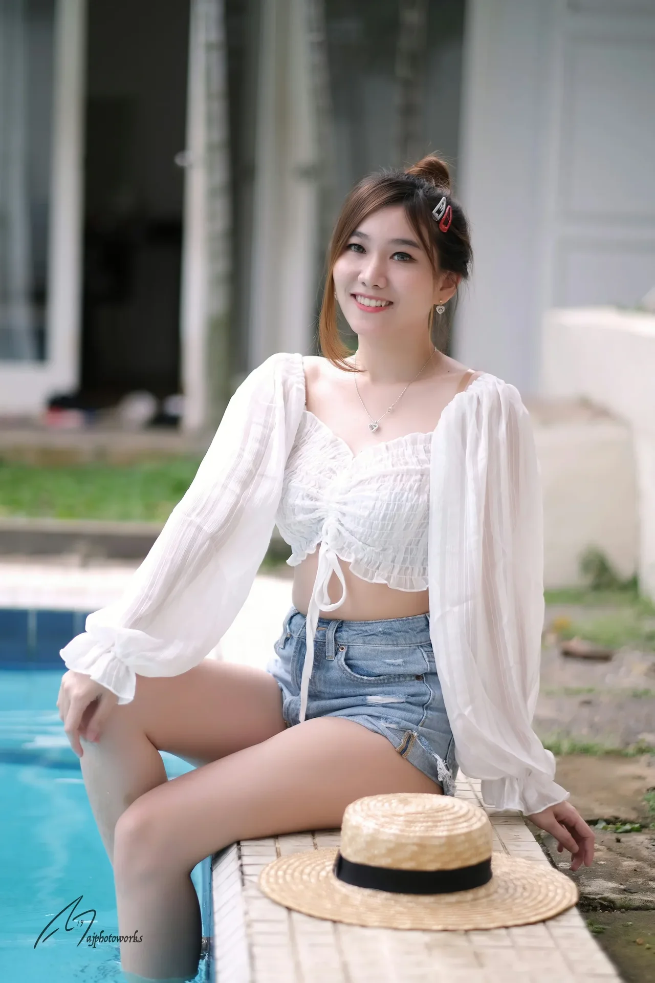 A serene summer day by the pool, where effortless style meets carefree charm.