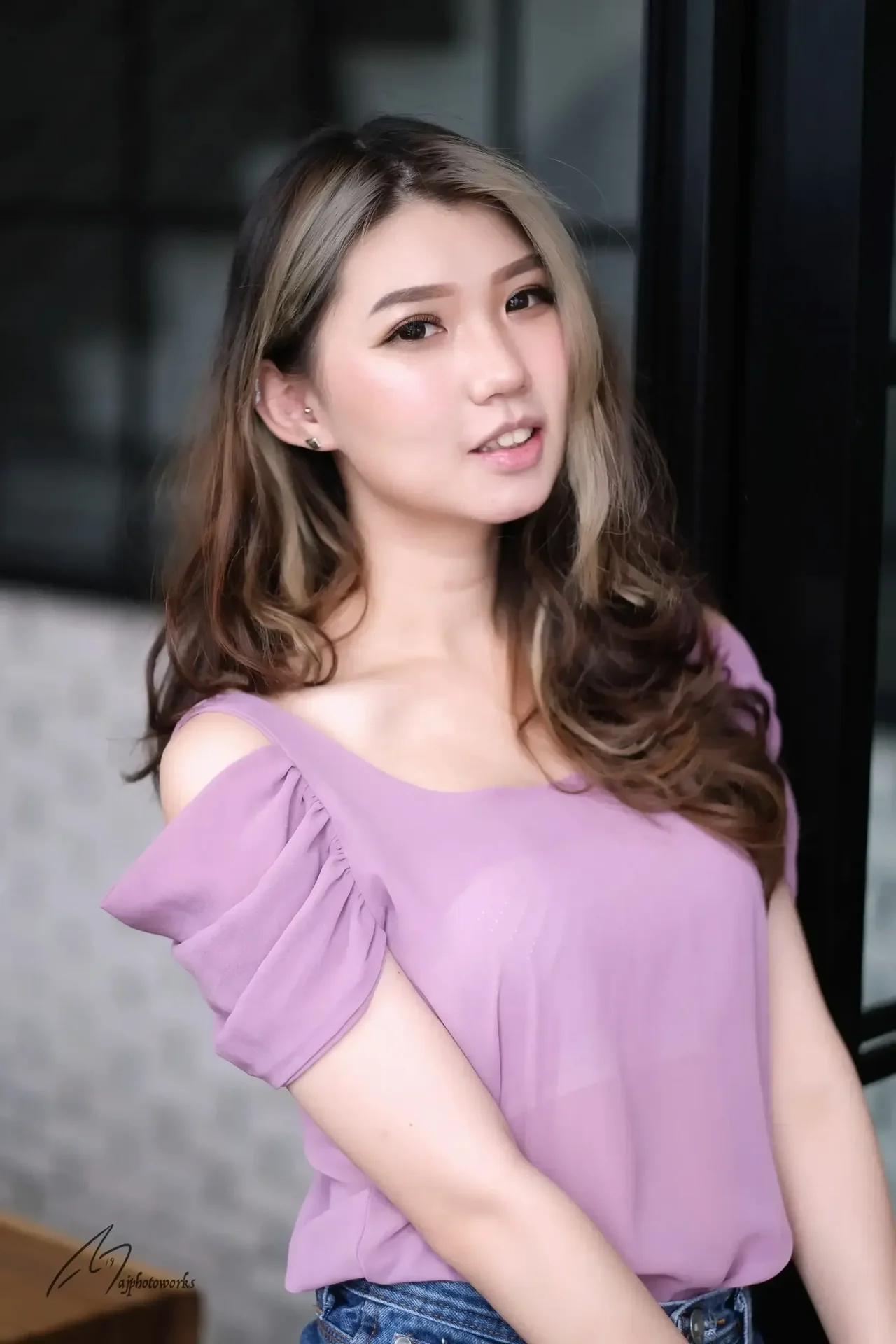 Casual elegance meets urban charm, highlighting a vibrant pink top and ripped denim shorts in a sunlit indoor setting.