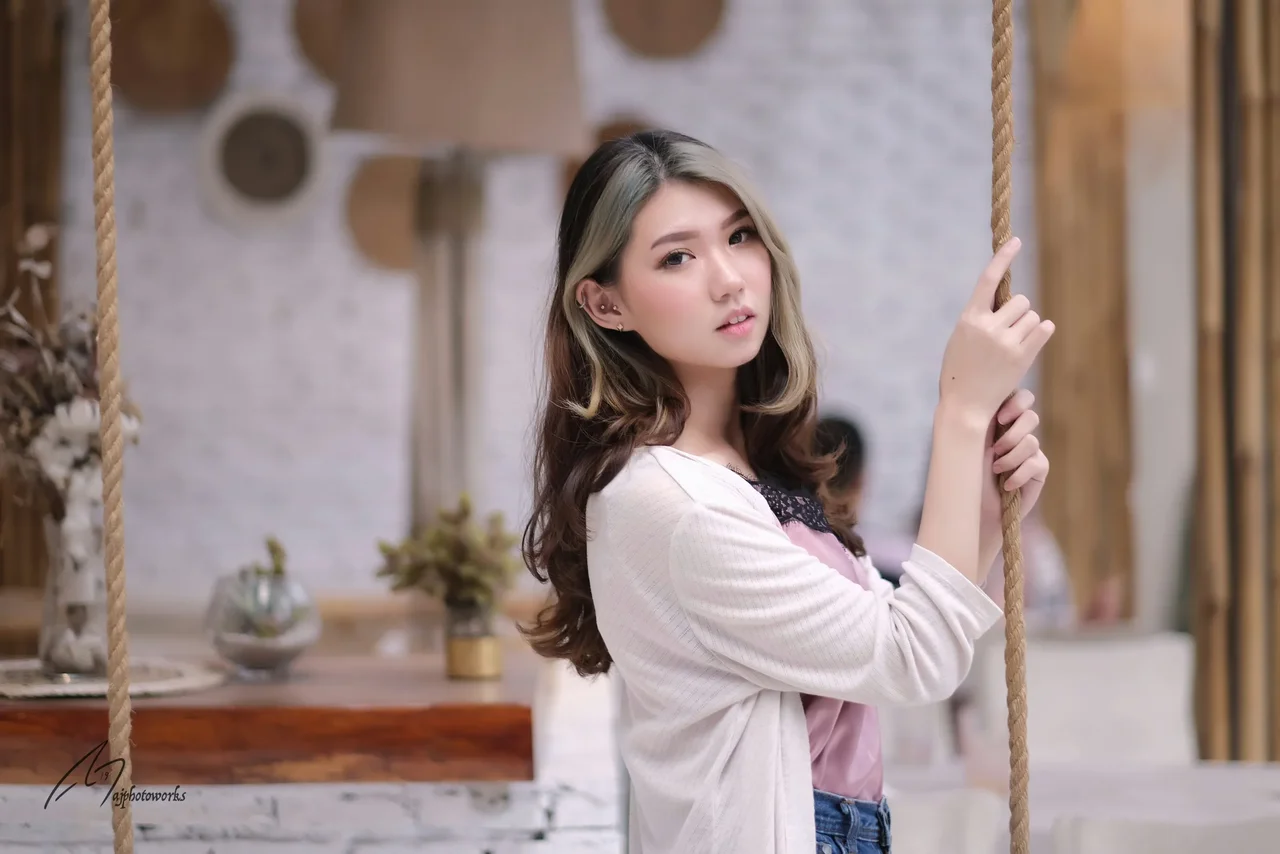 Elegant indoor fashion portrait showcasing layered textures and dynamic poses against soft, cinematic lighting.