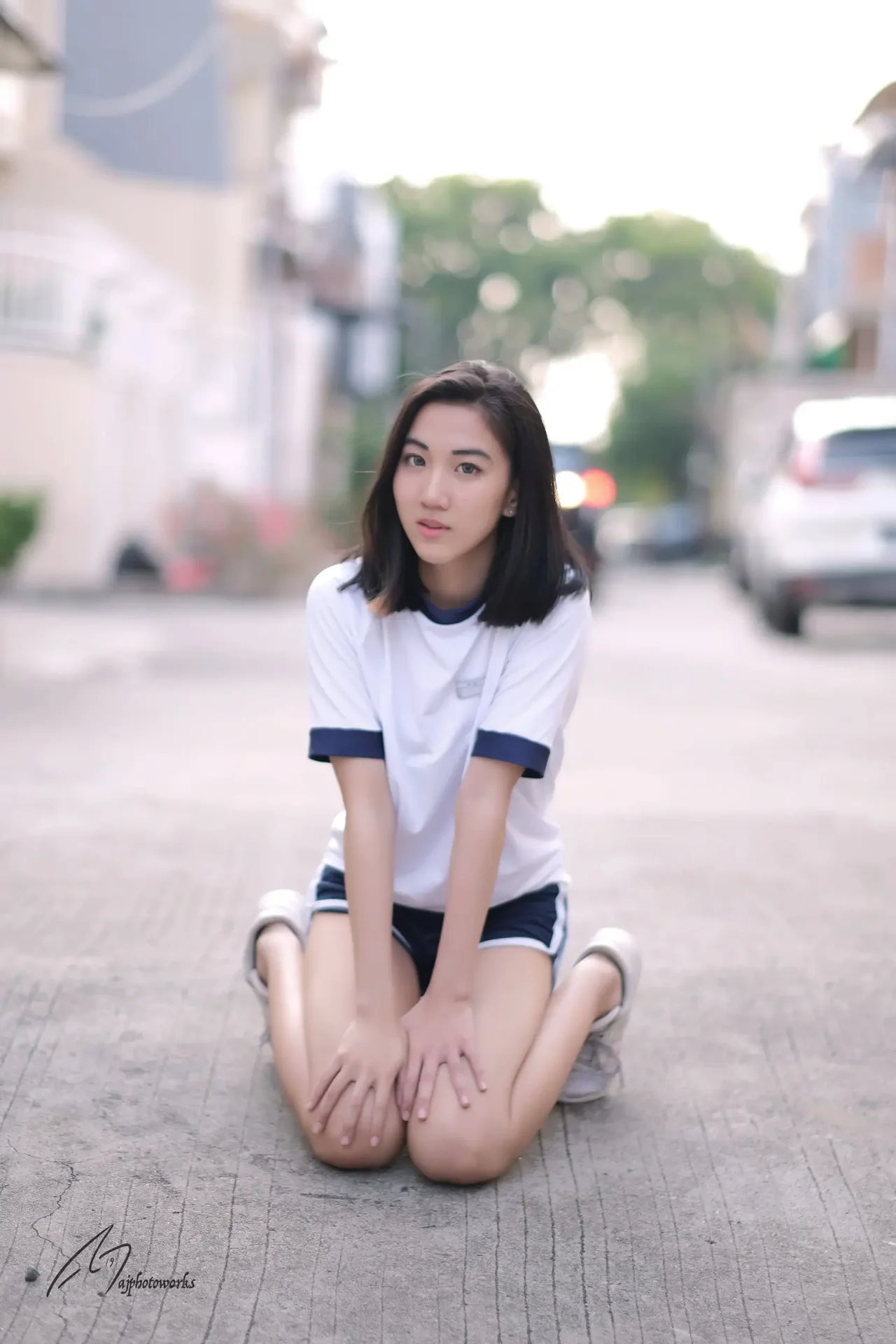 A study in urban stillness: the contrast of crisp school uniform hues against the muted tones of city life unfolds in a series of candid, liveliness-themed portraits.